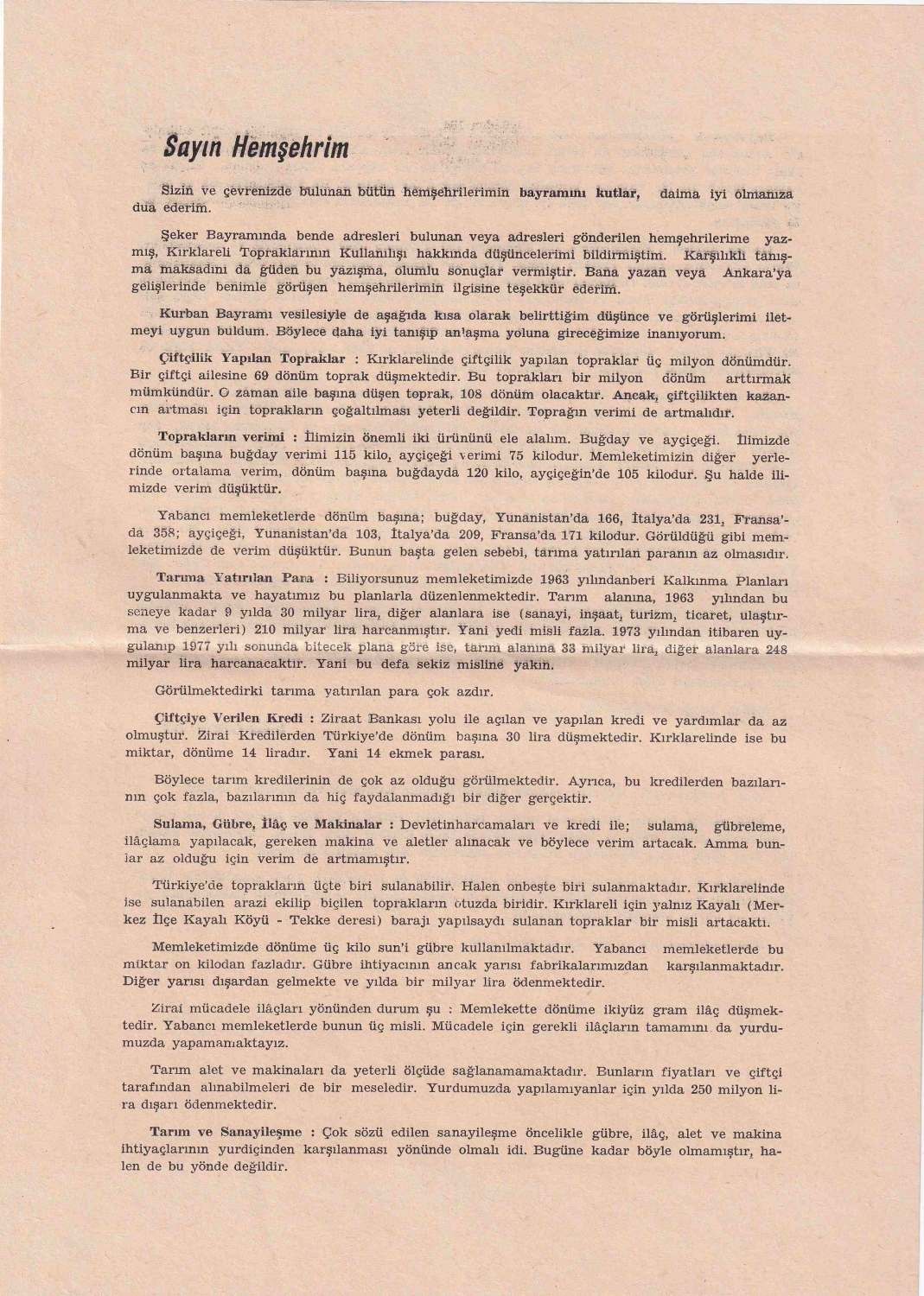 İsmet Öztunalının bayram tebriği ve halka seslenişi, 20x28 cm