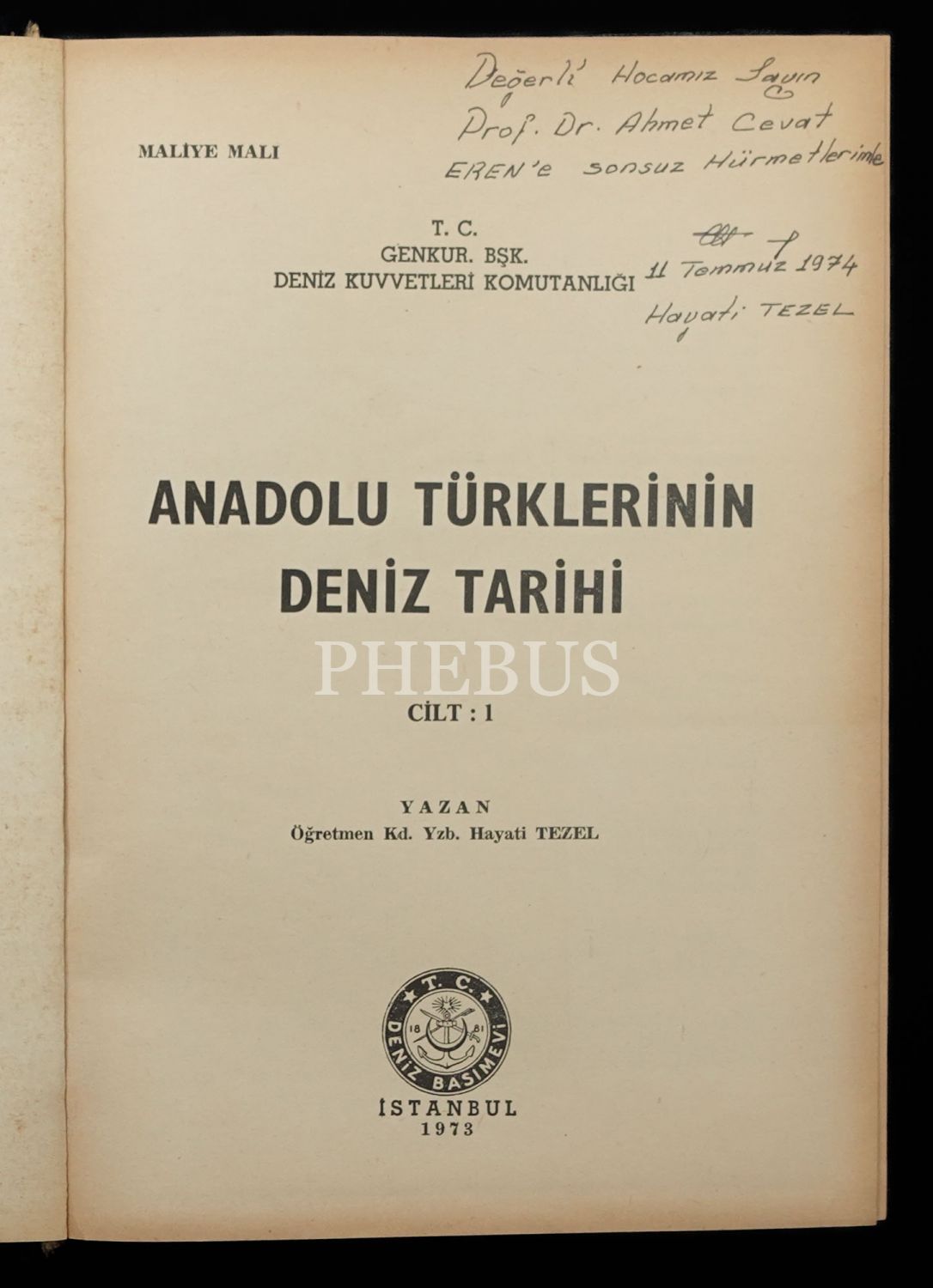 ANADOLU TÜRKLERİNİN DENİZ TARİHİ (1.Cilt), Hayati Tezel, 1973, Deniz Basımevi, 776 sayfa19x25 cm...
