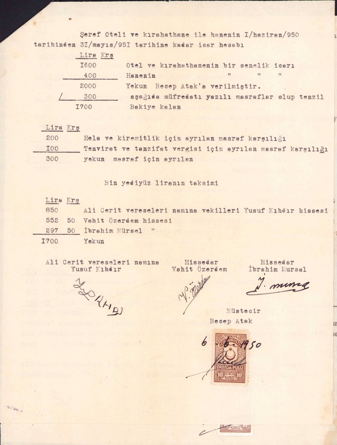 Merzifon Şeref Oteli Defteri 1949 - 1950 yılları ve bazı evraklar