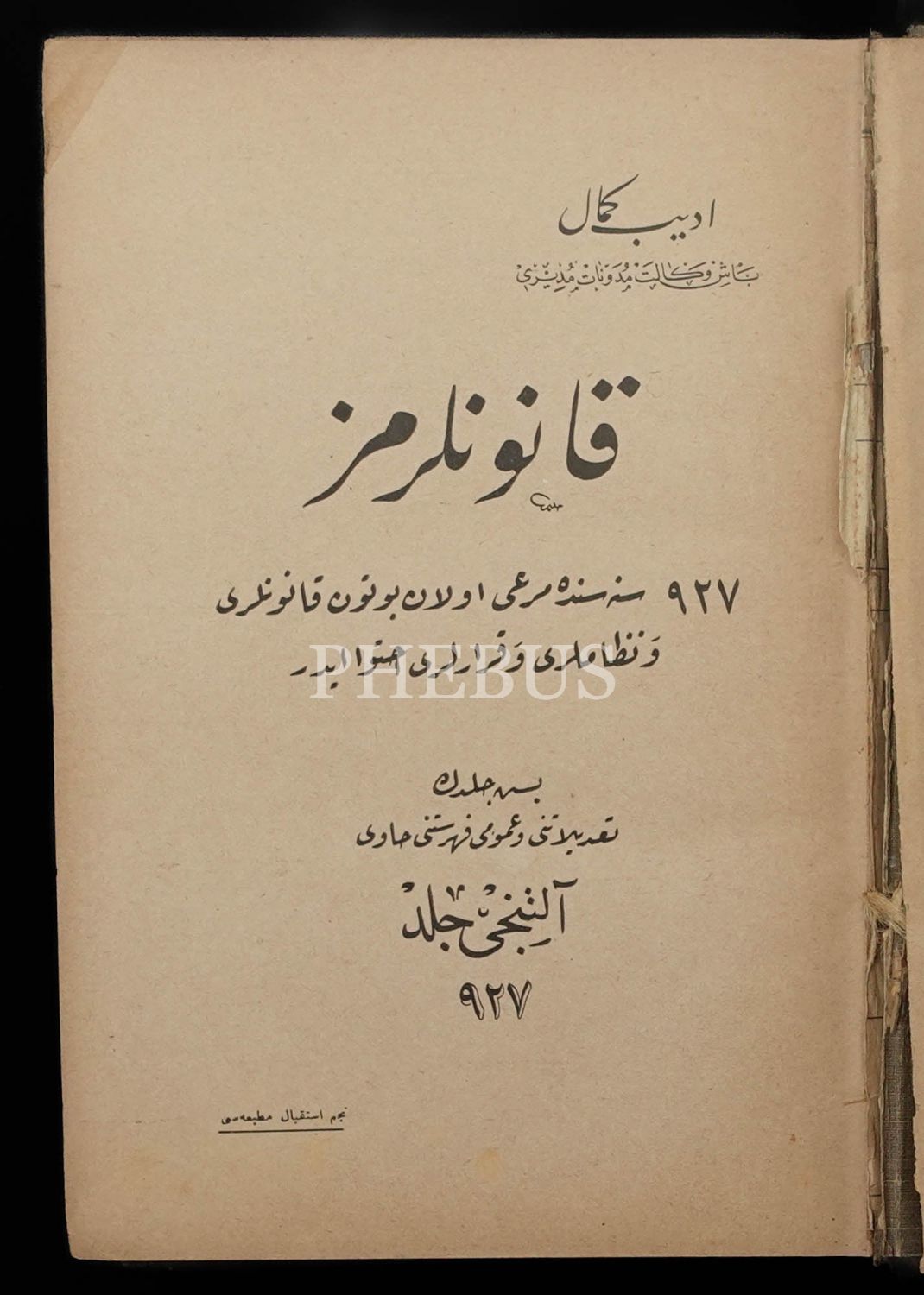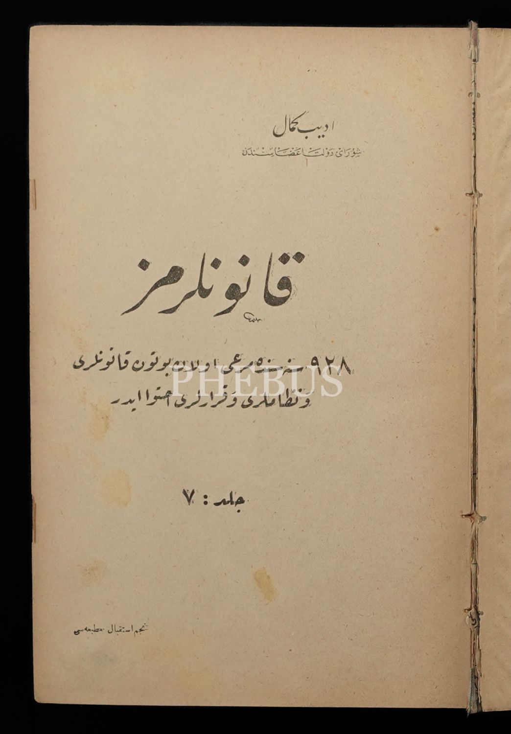 KANUNLARIMIZ (1. 2. 4. 5. 6. ve 7. Cilt), Edib Kemal, 1340-1345, Necm-i İstikbal Matbaası-Bursa Vilayet Matbaası, 1328+1436+1248+1202+1103+1099 sayfa, 16x23 cm...