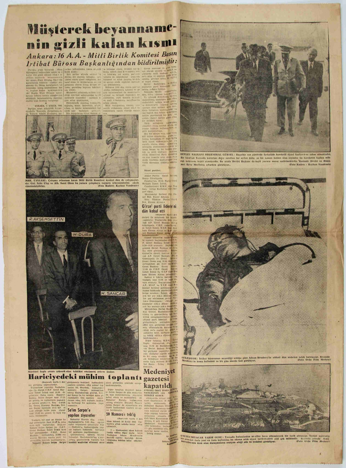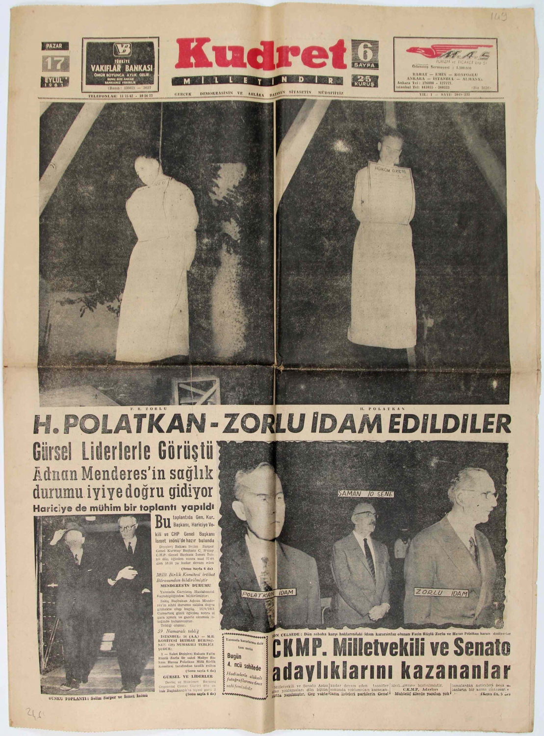 Kudret gazetesi, 1961, " H. Polathan - Zorlu İdam Edildiler", " Adnan Menderes'in Sağlık Durumu İyiye Gidiyor", 6 sayfa, 42x60 cm