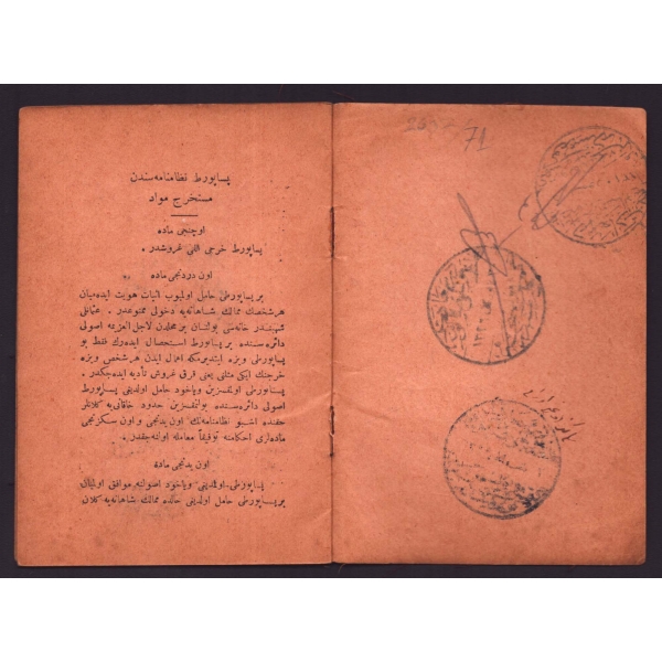 Osmanlı Devleti tarafından Sapatoy Davudoğlu Avram´a verilen Sultan Beşinci Mehmet Reşad tuğralı pasaport, 10x14 cm...