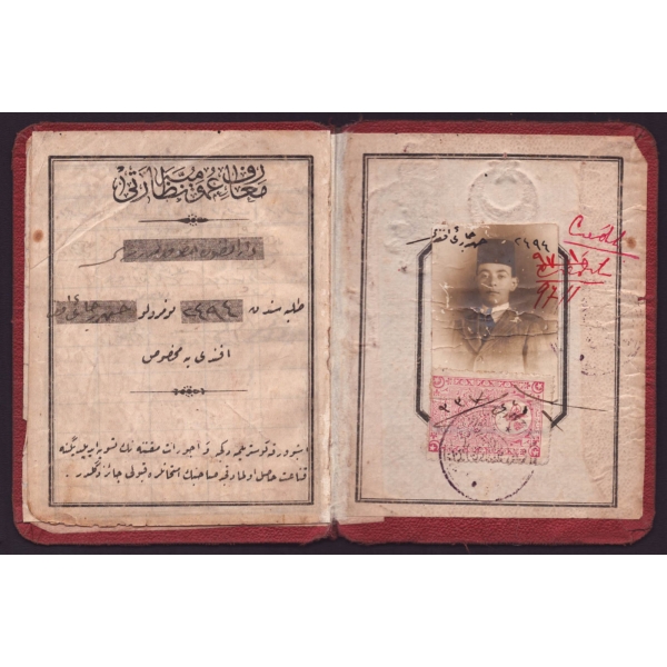 Darülfünun hukuk talebelerinden Hasan Recai Efendi´nin öğrenci kimlik cüzdanı, 10x13 cm...