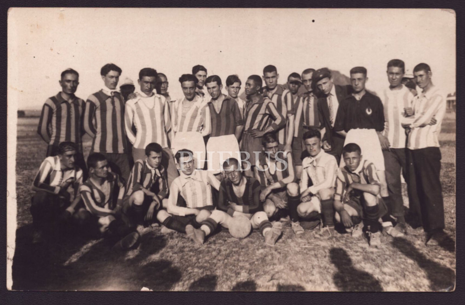 Afyonkarahisar´da düzenlenen bir futbol maçı sonrası hatıra fotoğrafı çektiren takım arkadaşları, 28 Ağustos 1929 tarihli, arka yüzü açıklamalı, 14x9 cm...