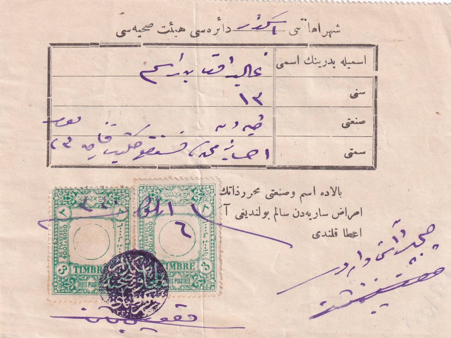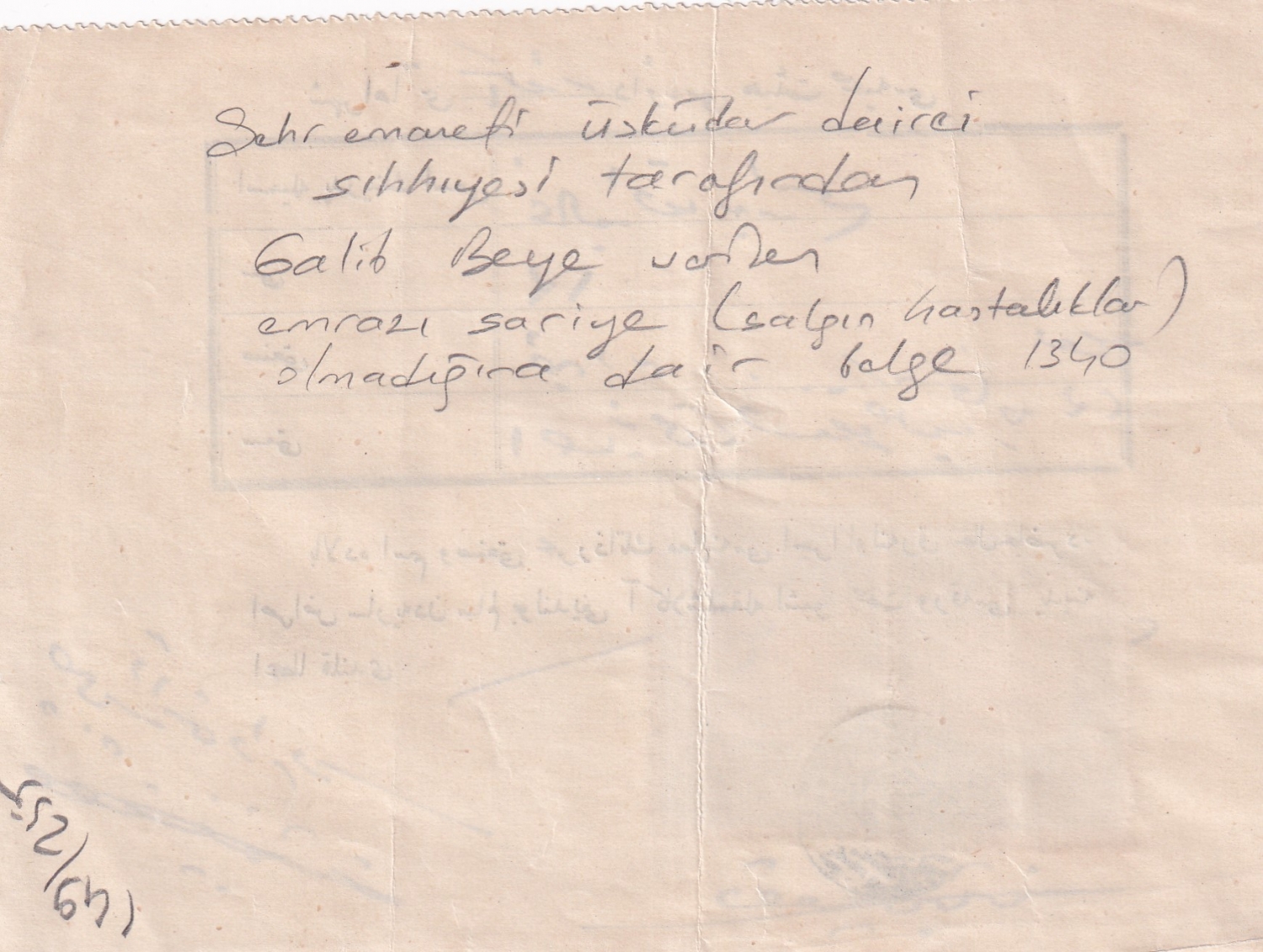 Osmanlıca Şehremaneti Üsküdar dairesi heyeti sıhhıyesi, 1340 tarihli, 15x11 cm