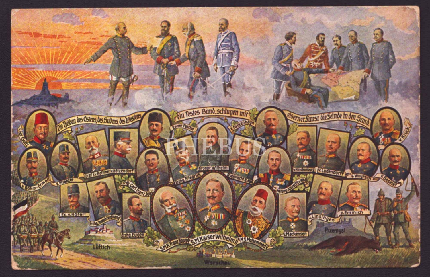Müttefik devletlerin liderleri ve kumandanları görselli İttifak kartpostalı, postadan geçmiş, 14x9 cm...