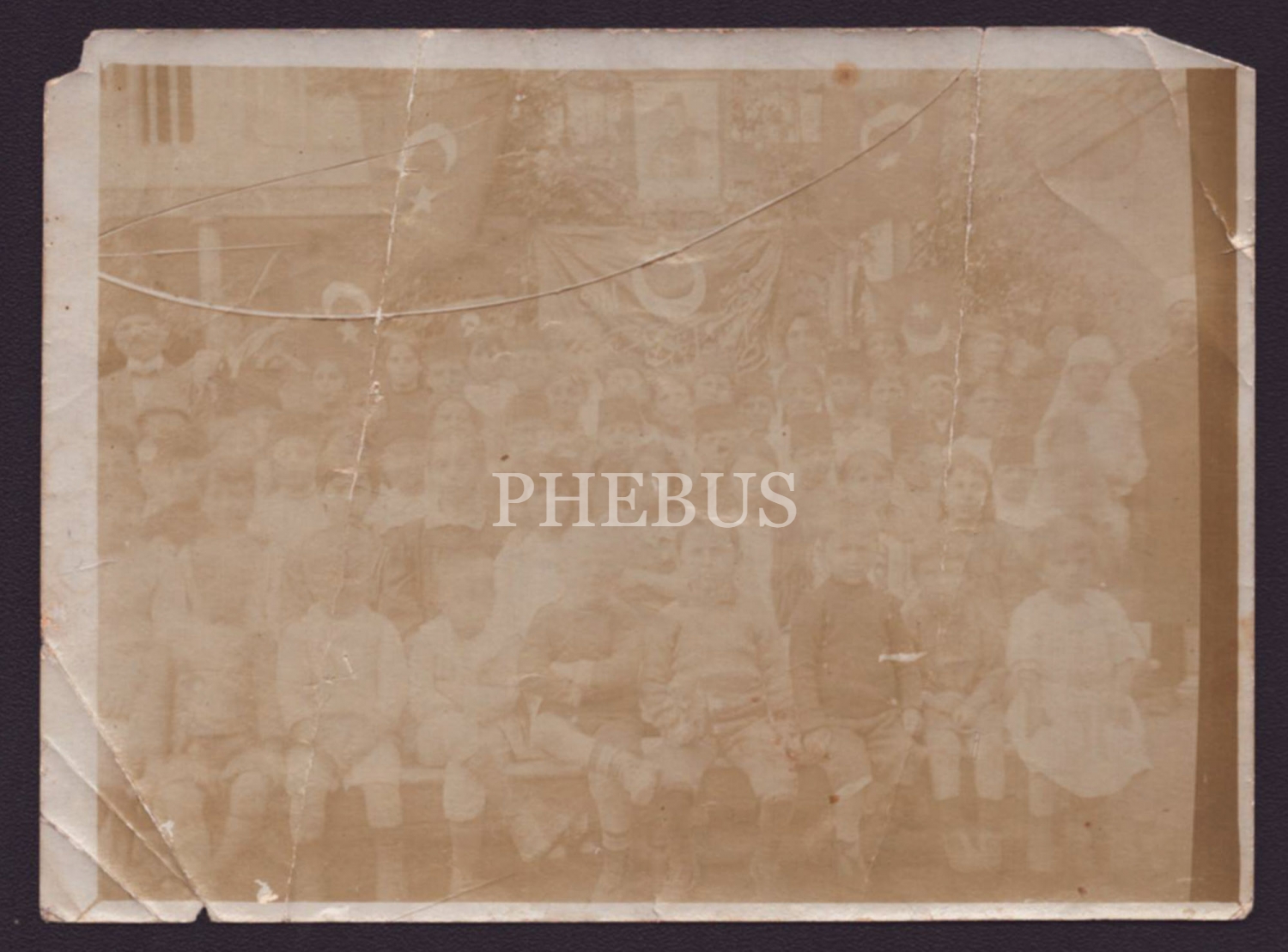 Mehmed Reşad portresi önünde poz veren öğrencilerin hatıra fotoğrafı, 12x9 cm...