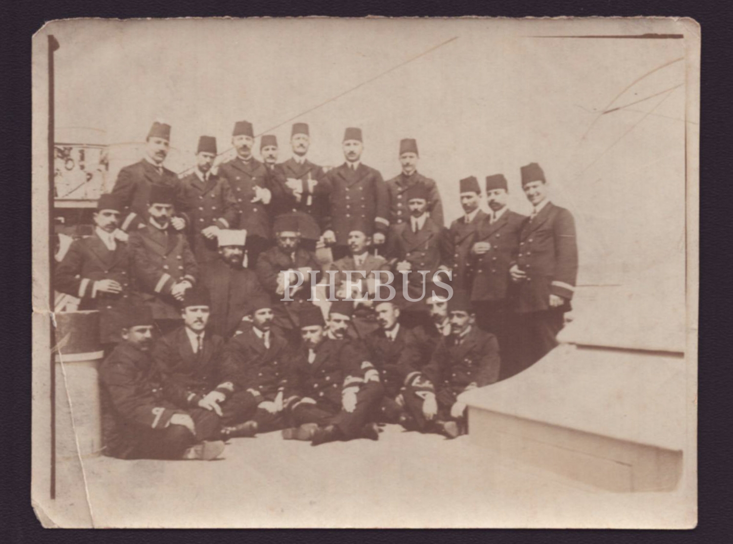 Gemi güvertesinde toplu hatıra fotoğrafı çektiren denizciler, 12x9 cm...