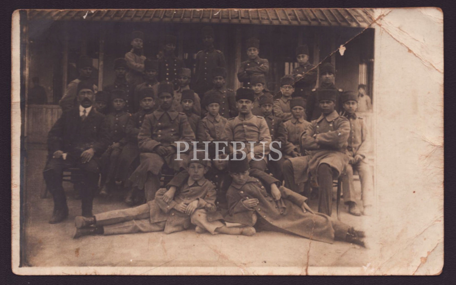 Osmanlı döneminde askeri bir okulun öğrencileri ve öğretmenlerinin aldırdığı hatıra fotoğrafı, 14x9 cm...