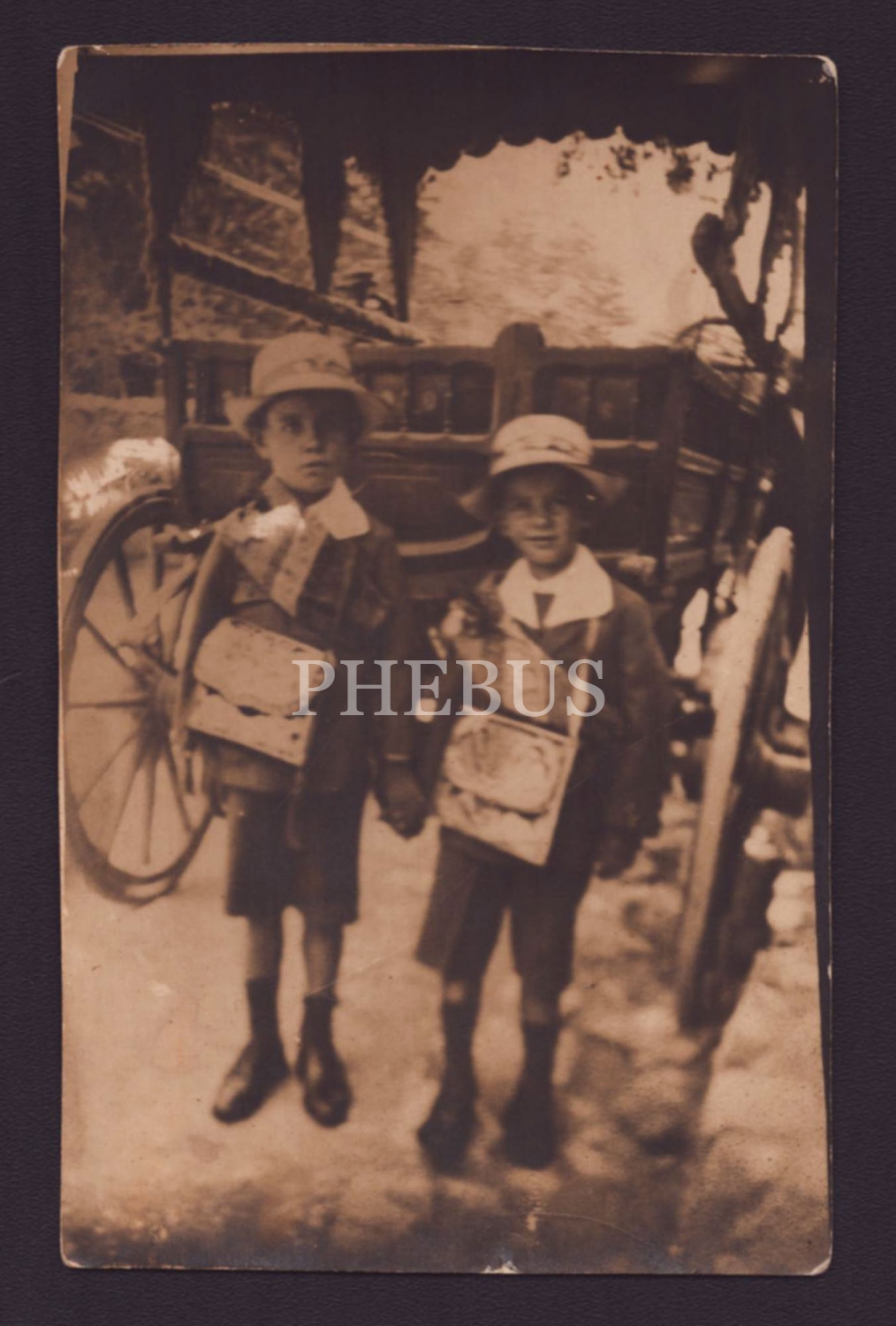 Cüz keseli iki minik kardeşin 1926 tarihli hatıra fotoğrafı, arka yüzü Osmanlıca açıklamalı, 8x13 cm...