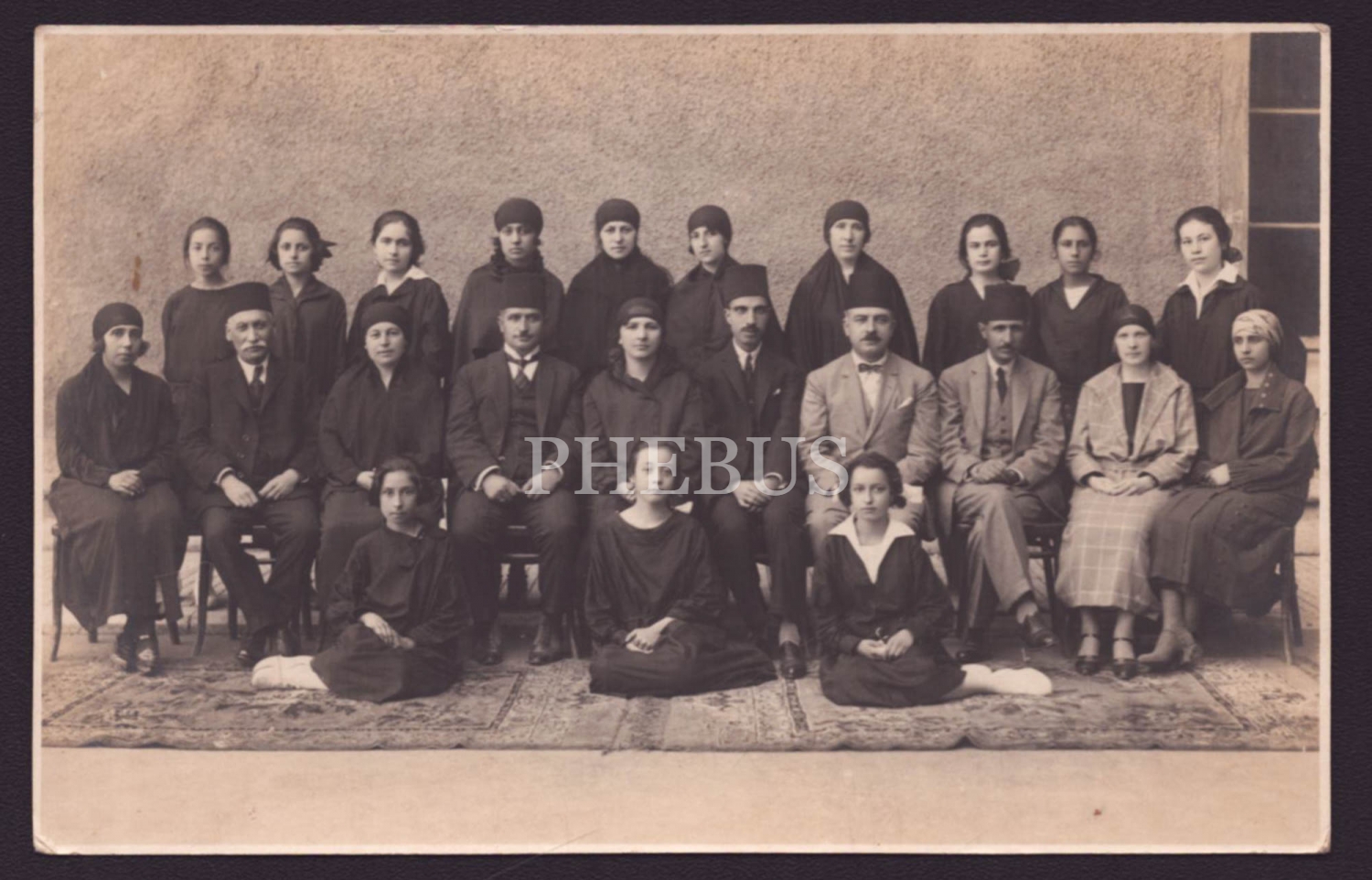 Kız mektebi öğretmen ve öğrencilerinin toplu hatıra fotoğrafı, 14x9 cm...