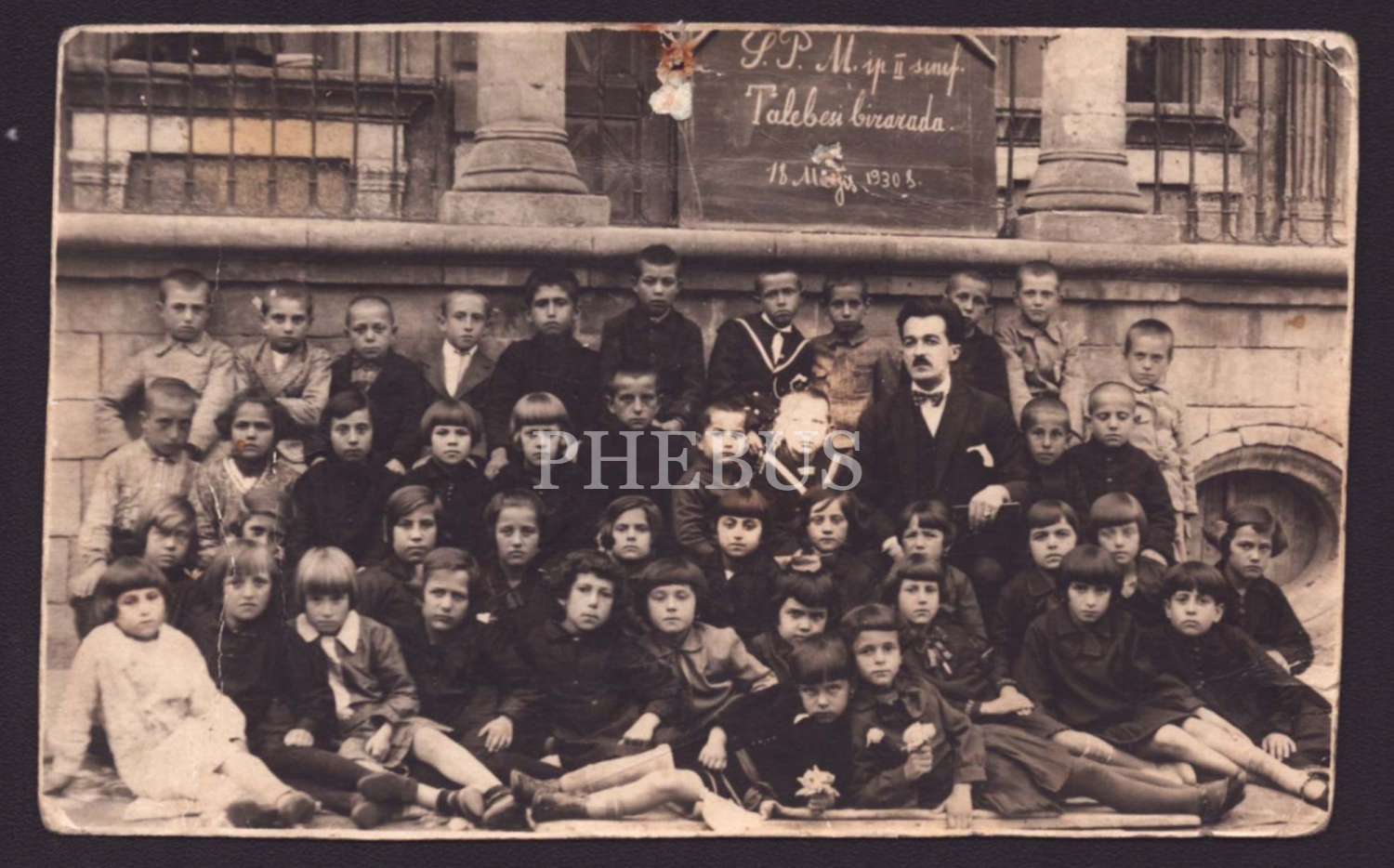 Minik öğrencilerin öğretmenleriyle aldırdığı 18 Mayıs 1930 tarihli toplu hatıra fotoğrafı, 14x9 cm...