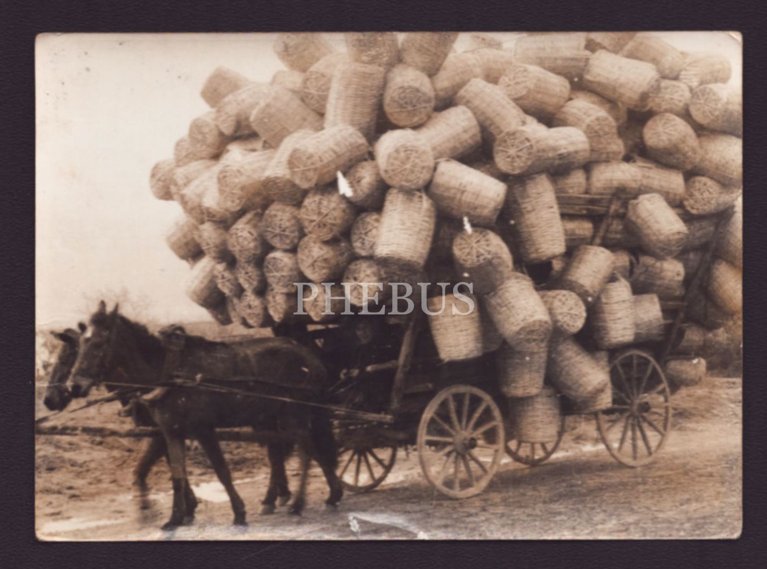 Hasır sepetlerini at arabasına yüklemiş esnaf seyir halinde, 11x8 cm...