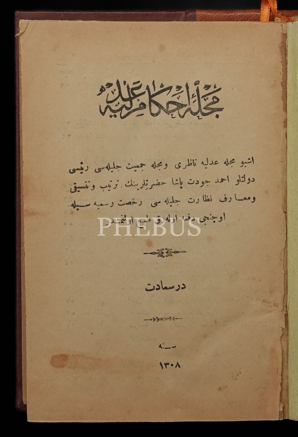 MECELLE-İ AHKAM-I ADLİYE, Ahmed Cevdet Paşa, 1308, 633 sayfa, 12x18 cm...
