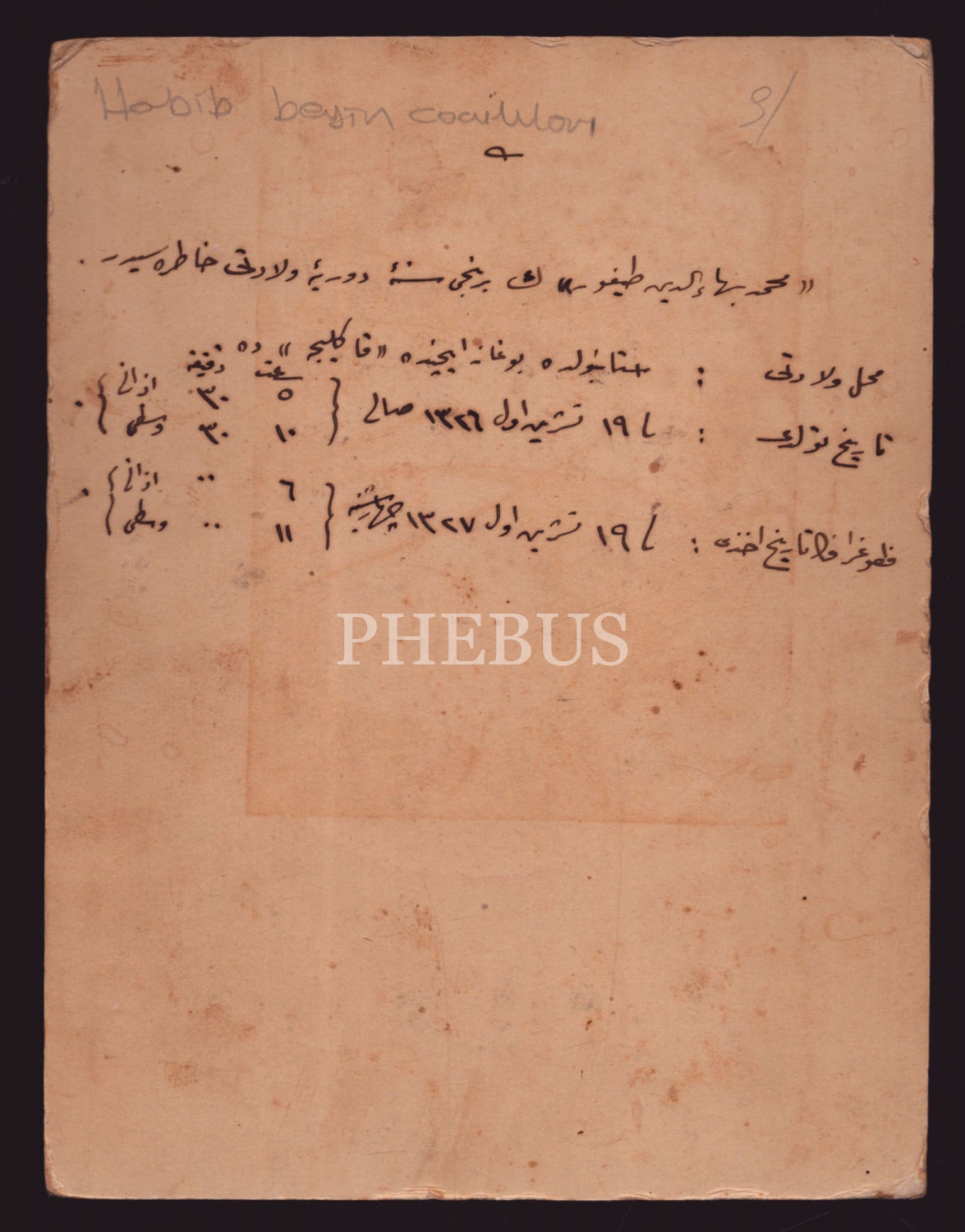 İstanbul´un ikonik yapılarından biri olan Bulgar Palas´ı inşa ettiren "Bulgur Kralı Habib Bey"in terekesinden kendisine ve ailesine ait 13 adet kabin fotoğraf, çocuklarının ve yakın akrabalarının görüldüğü fotoğraflardan sekiz adedi Phebus Fotoğrafhanesi´nde çekilmiştir, muhtelif ebatlarda...
