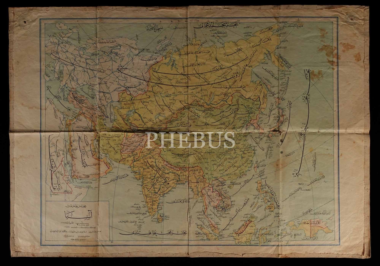 Osman Mükerrem bin İsmail Fatih Efendi´nin 1 Kanunievvel 1923 tarihinde tertip ettiği, "Teceddid Haritalardan Asya" başlıklı Osmanlıca harita, Abojoli Matbaası, 57x81 cm...