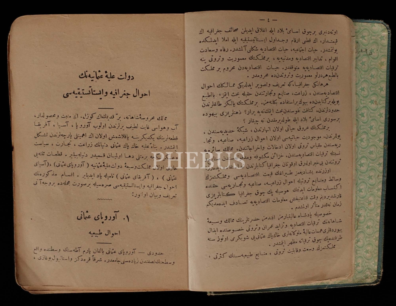 Osmanlı Devleti´nin, zirai, iktisadi, ticari ve askeri durumunu açıklayan 326 sayfalık metin ve 64 adet haritadan oluşan eserdir.