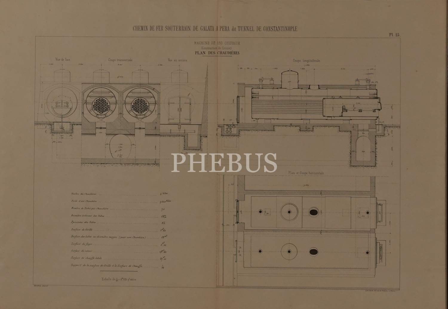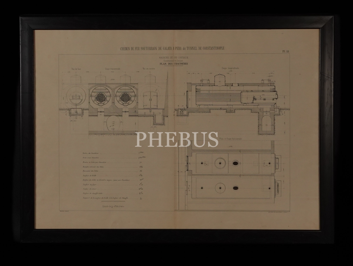 (Galata-Pera) Tarihi Tünel Füniküler Hattı´nın Fransızca "Kazan Planı", "Chemin de fer souterrain de Galata a Pera du Tunnel de Constantinople", çerçevesiyle birlikte 68x50 cm...
