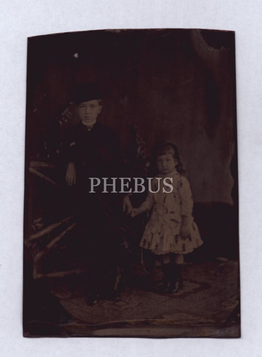 İki sevimli Osmanlı çocucuğun, fotoğrafçılık tarihimizde oldukça nadir rastlanan tintype yöntemiyle çekilmiş fotoğrafı, 6x9 cm...