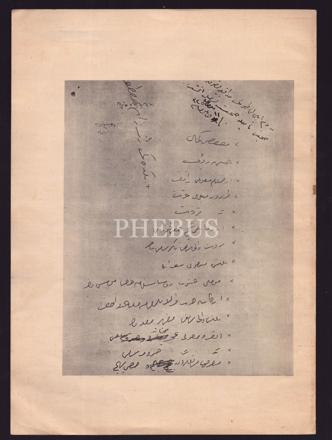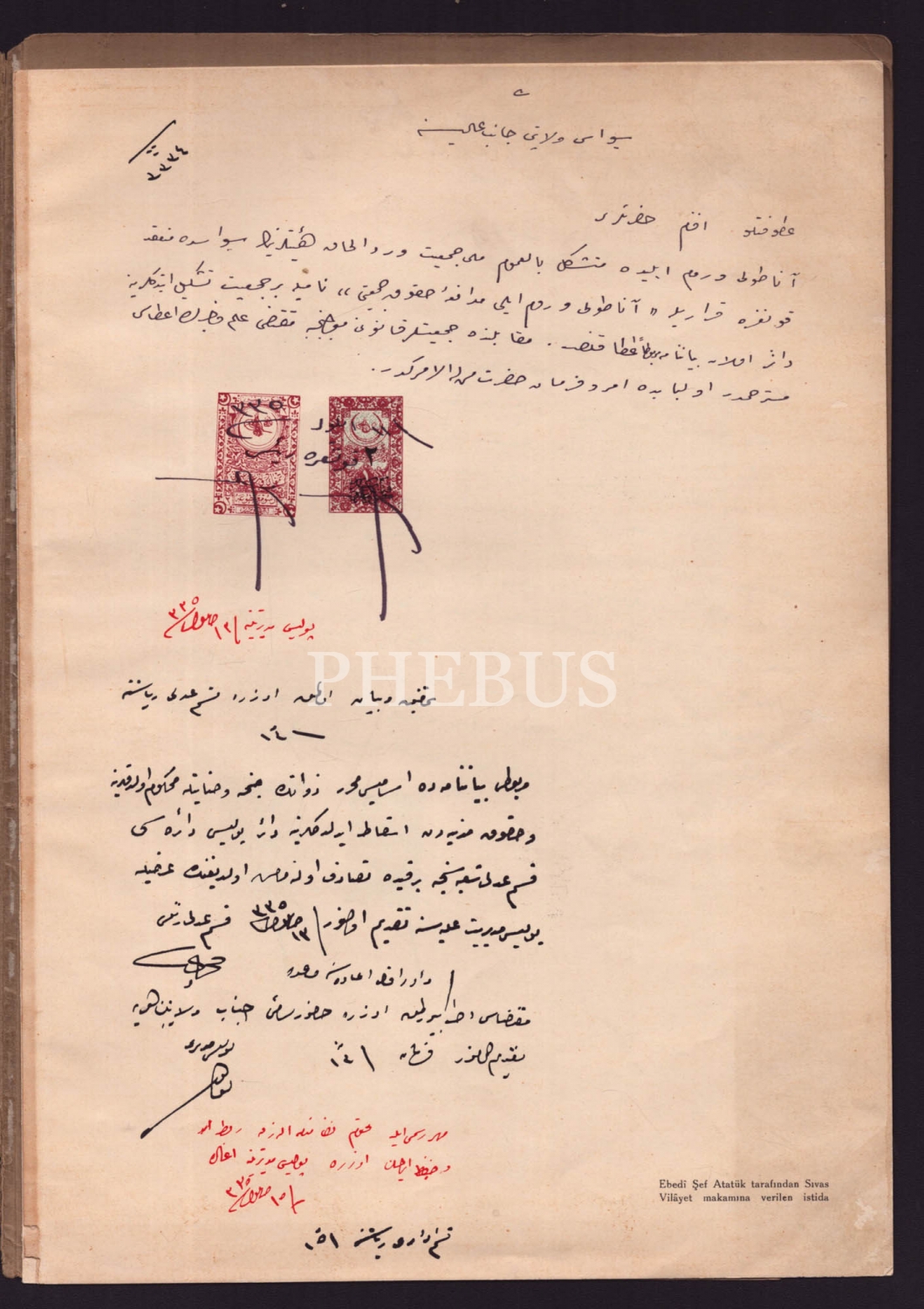 Mustafa Kemal Atatürk´ün, Anadolu ve Rumeli Müdafaa-i Hukuk Cemiyeti´ni kurarken Sivas Vilayet Makamına vermiş olduğu dilekçe ve beyannamenin, Sivas Kongresi´nin 20. yıl dönümüne özel olarak hazırlanan tıpkıbasım suretleri, Hasan Âli Yücel´in ıslak imzalı daktilo mektubuyla, 4 yaprak + mektup, 25x35 cm...
