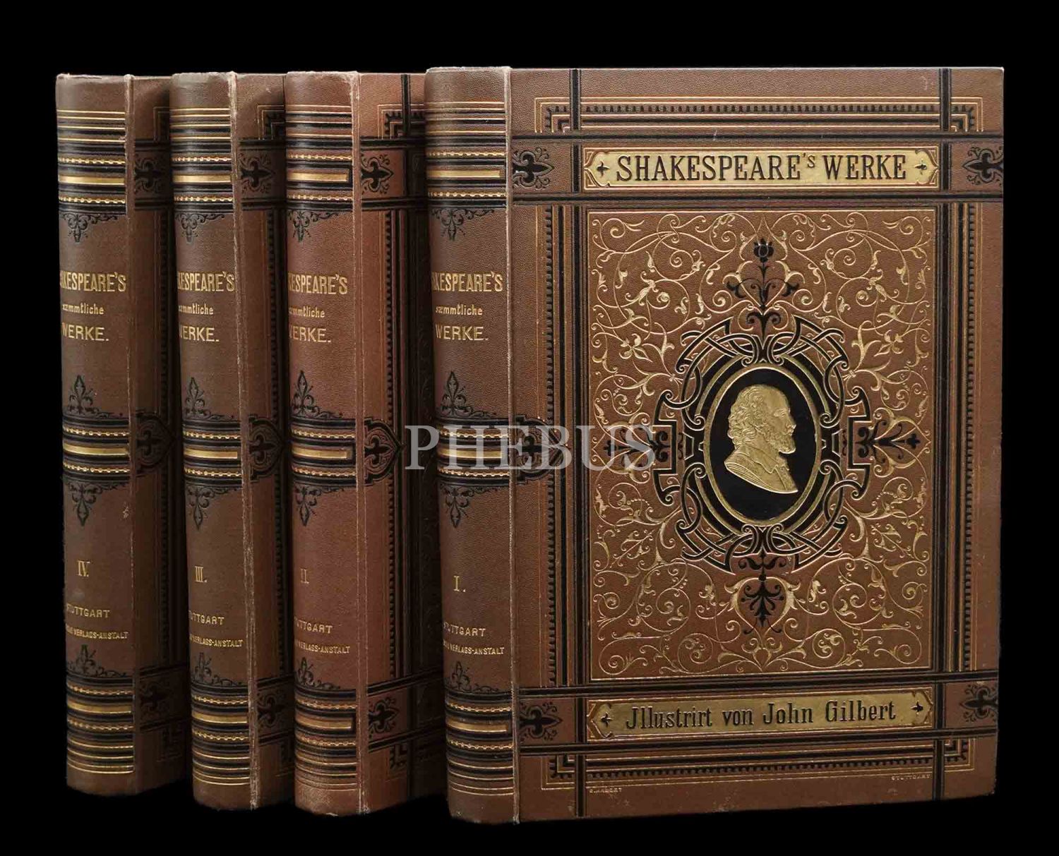 SHAKESPEARE´S SAMMTLICHE WERKE (4 Cilt Takım), İllüstratör: John Gilbert, 1890, Druck und Verlag von Eduard Hallberger Stuttgart, 506+531+495+479 sayfa, 19x27 cm...