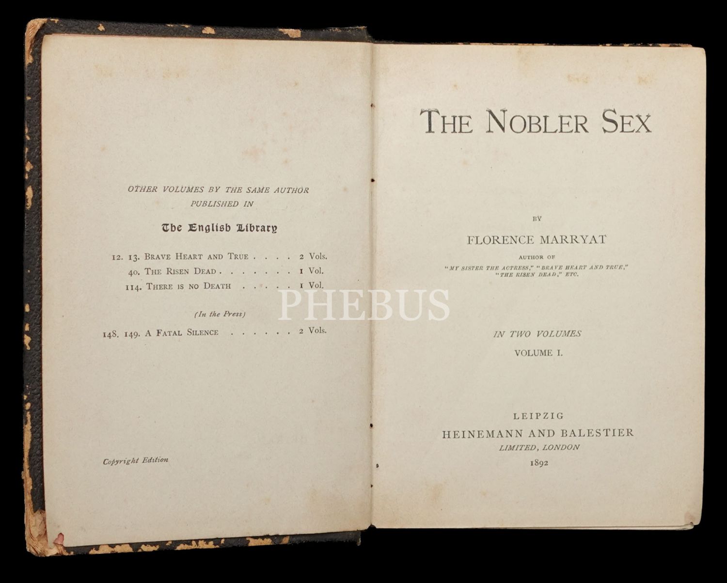 THE NOBLER SEX (2 Cilt), Florence Marryat, 1892, Leipzig Heinemann and Balestier London, 292+310 sayfa, 12x16 cm...