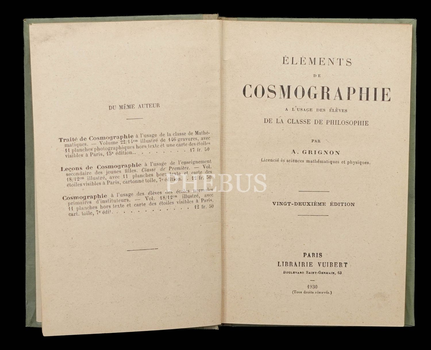 ELEMENTS DE COSMOGRAPHIE, A. Grignon, 1930, Librairie Vuibert, 127 sayfa, 12x18 cm...
