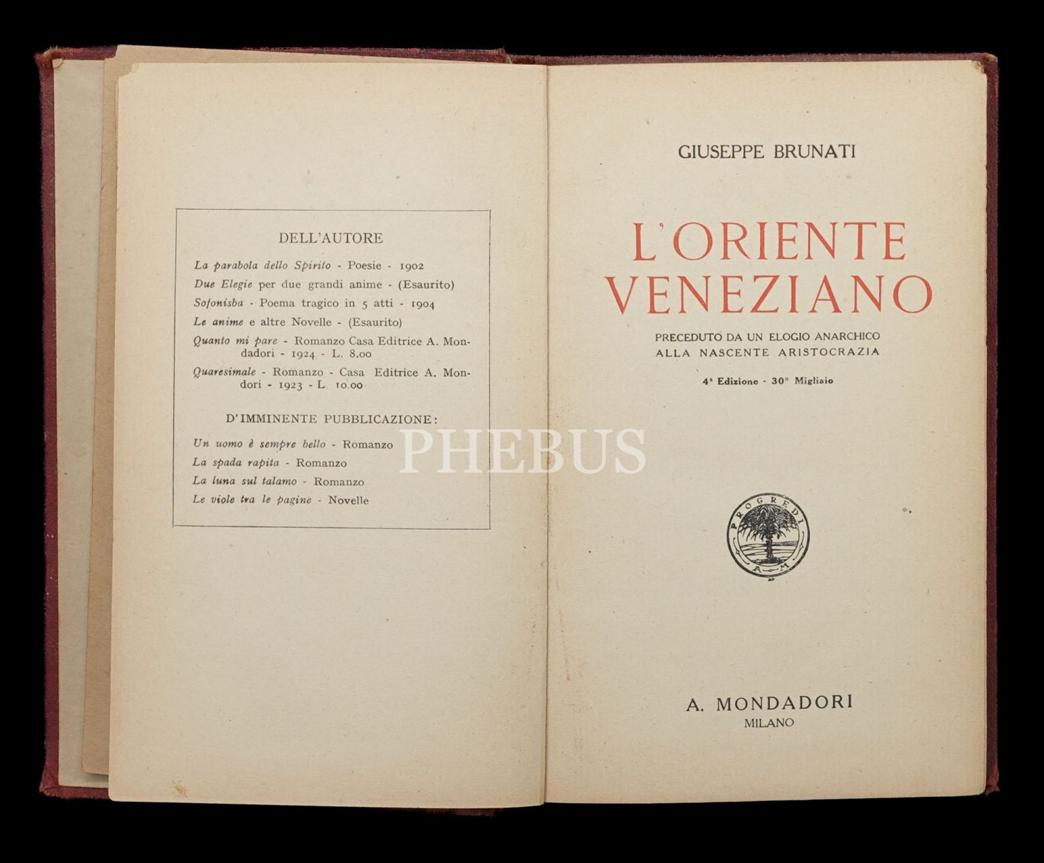 L´ORIENTE VENEZIANO, Giuseppe Brunati, 1925, A. Mondarori Milano, 305 sayfa, 13x19 cm...