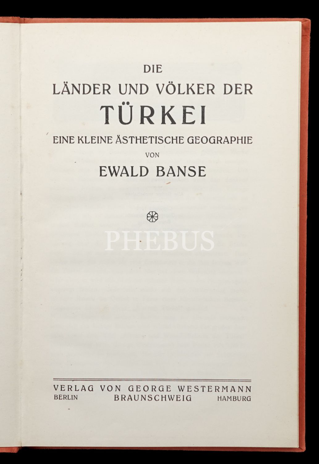 DIE LANDER UND VÖLKER DER TÜRKEI EINE KLEINE ASHETISCHE GEOGRAPHIE, Ewald Banse, George Westermann Berlin-Braunschweig Hamburg, 1916, 126 sayfa, 17x25 cm...