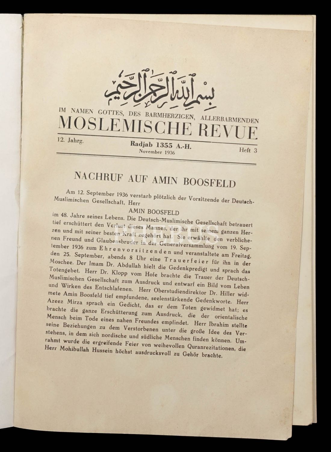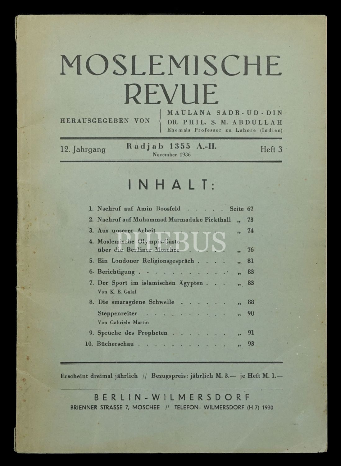 MOSLEMISCHE REVUE 12. Yıl 3. sayı, 1936, Wilmersdorf-Berlin, 98 sayfa,17x24 cm...