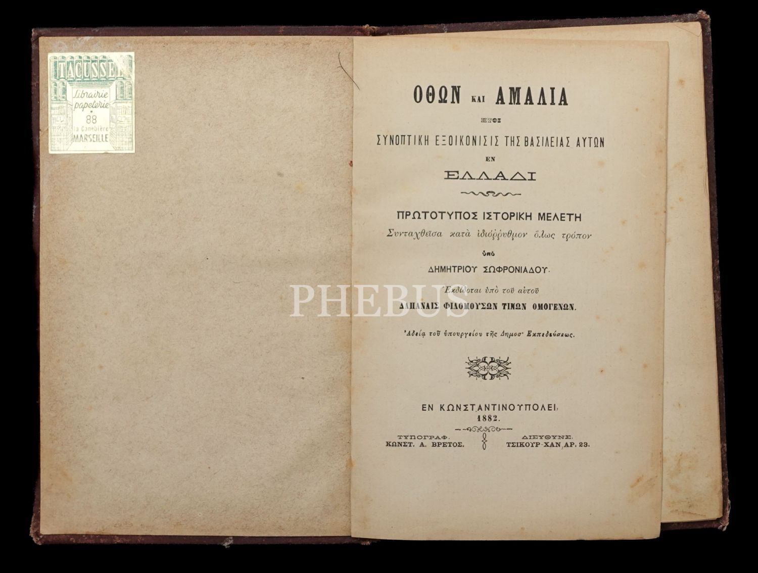 OTTO VE AMALIA (Yunanca), Dimitriou Sofroniadou, 1882 Constantinople, Avretos-Chikurhan, 76 sayfa, 14x21 cm...