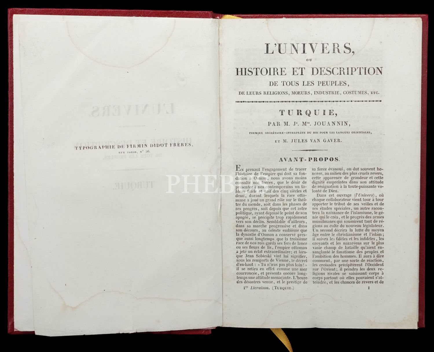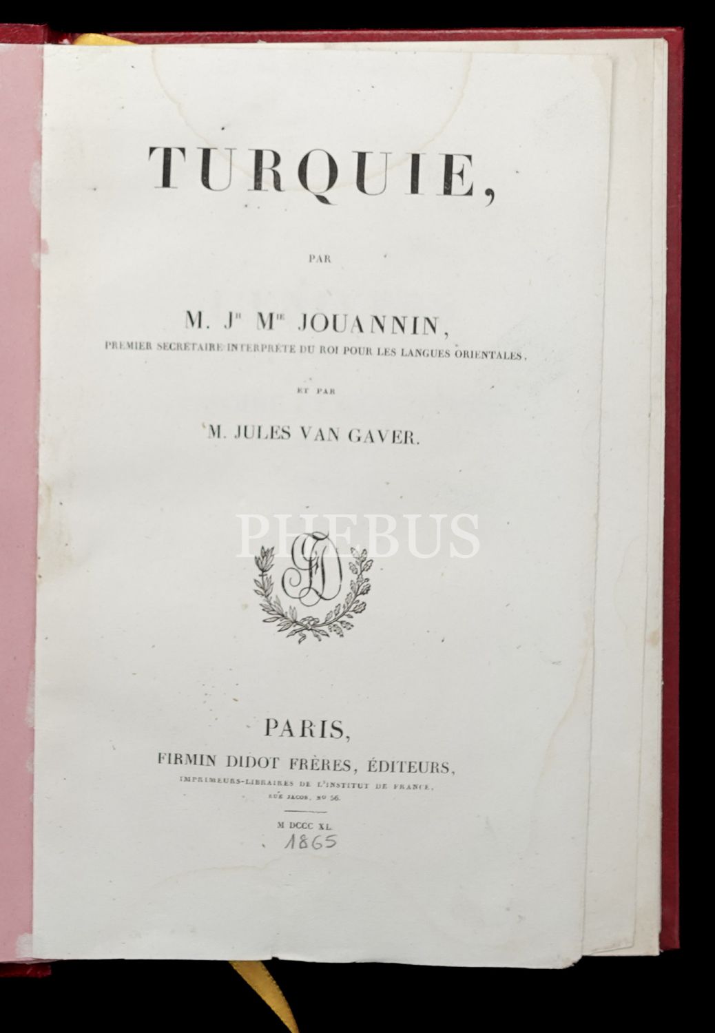 TURQUIE, M. Jouannin & Jules Van Gaver, 1865, Firmin Didot Freres Paris, 462 sayfa, 15x23 cm...