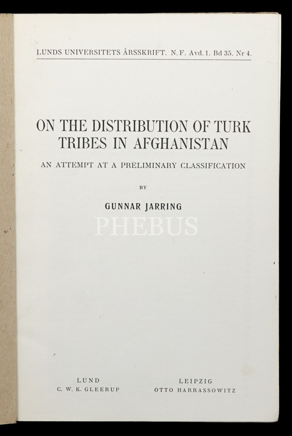 ON THE DISTIRBUTION OF TURK TRIBES IN AFGHANISTAN (1. Cilt, 35. Sayı, 4 No.), Gunnar Jarring, 1939, Lund C.W.K.Gleerup-Otto Harrassowitz Leipzig, 104 sayfa, 15x21 cm...
