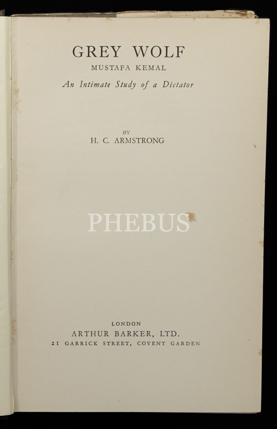 GREY WOLF Mustafa Kemal (An Intimate Study of a Dictator), H.C. Armstrong, 1933, Arthur Barker London, 352 sayfa, 15x23 cm...