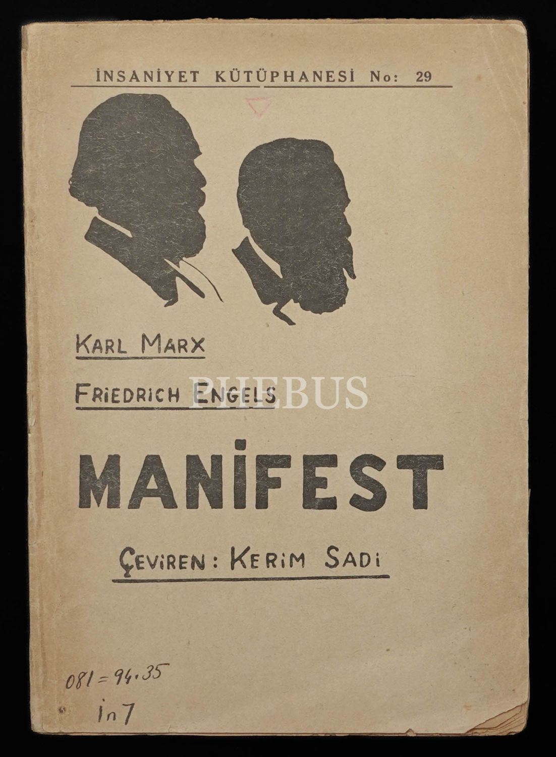 MANİFEST, Karl Marx - Friedrich Engels, çev: Kerim Sadi, 1936, İnsaniyet Kütüphanesi no: 29, Bozkurt Matbaası, 64 sayfa, 15x21 cm...