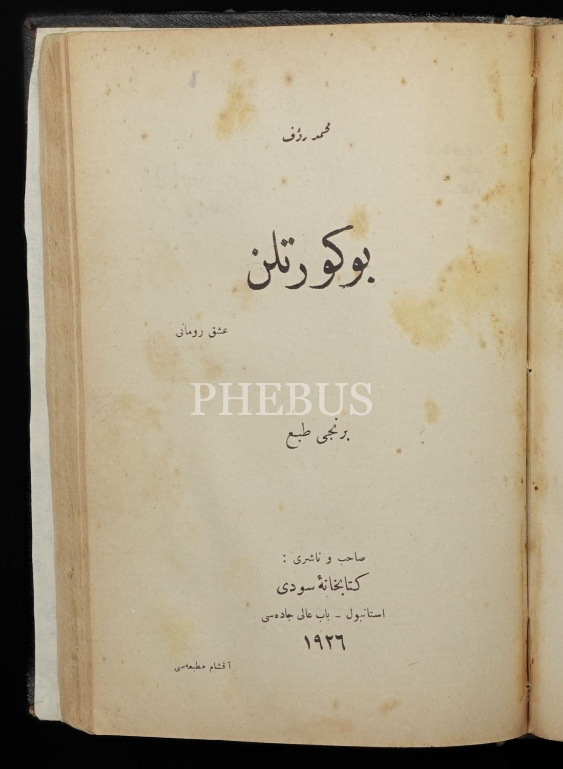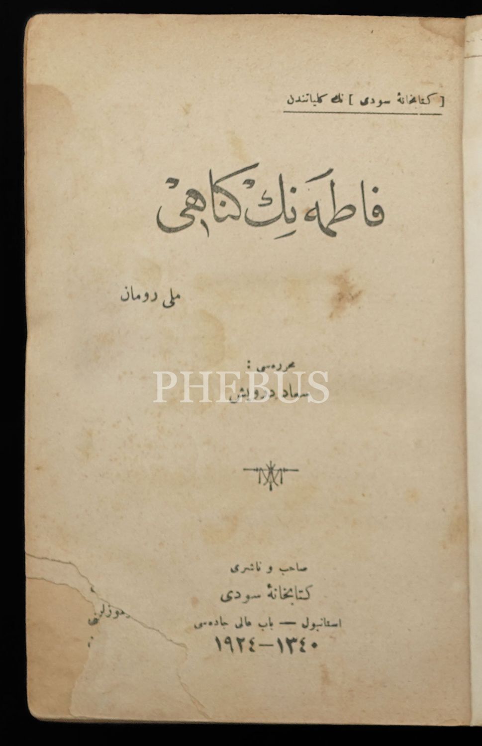 FATMA´NIN GÜNAHI, Suad Derviş, 1924, Orhaniye Matbaası, Kütübhane-i Sudi, 118 sayfa; YALNIZ KADIN, Rober Vibon, çev: Seyyah (Hakkı Süha), 1924, Cihan Biraderler Matbaası, 234 sayfa; AŞK PEYGAMBERİ, Semiha Cemal, 1927, İkdam Matbaası, 126 sayfa; BÖĞÜRTLEN, Mehmed Rauf, 1926, Akşam Matbaası, 108 sayfa, 15x20 cm...