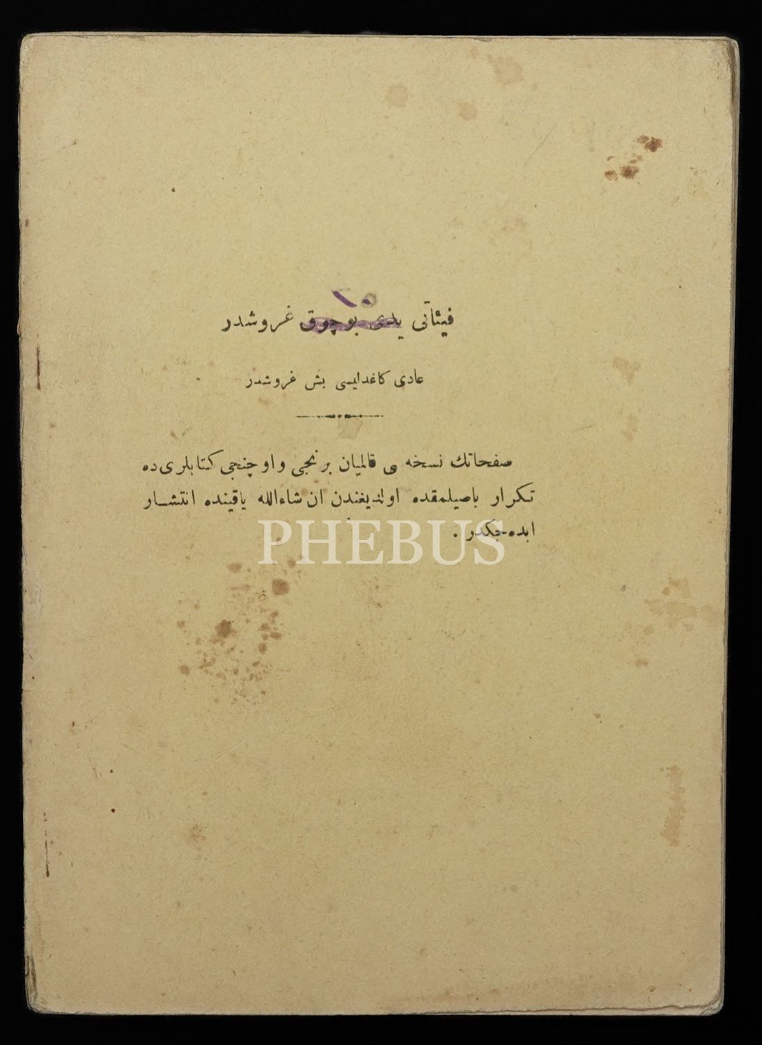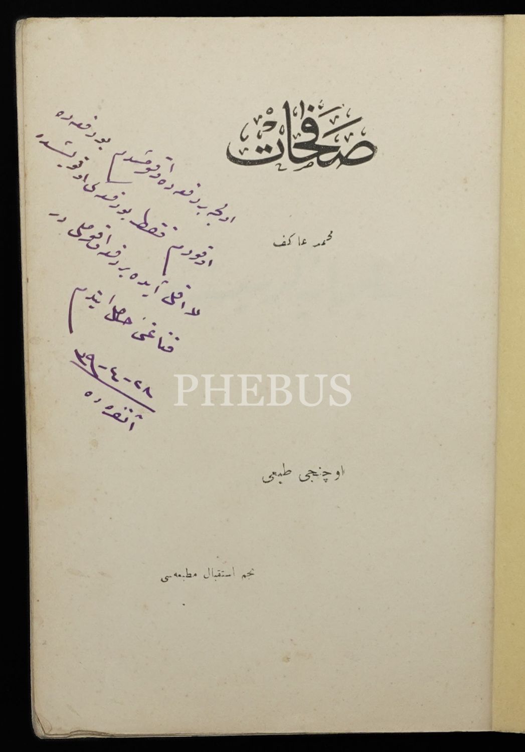 Künye sayfasında, 28 Nisan 1923 tarihli "Evvelce bir defa okumuştum. Bu defa da okudum. Bu defayı okuyuşta layıkıyla ayda bir defa okumadılır kanaatini hasıl ettim." yazılı okuyucu notu mevcuttur.