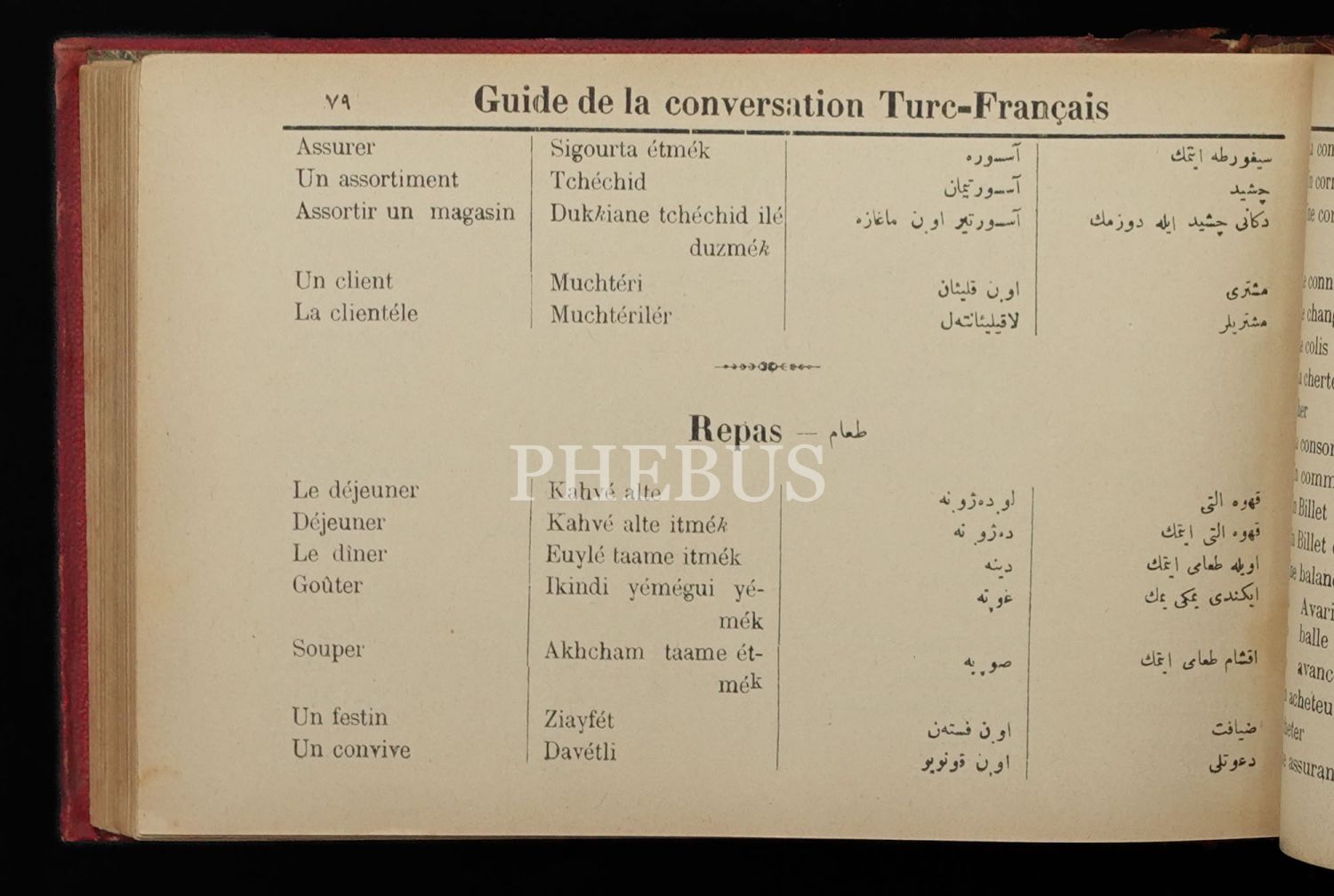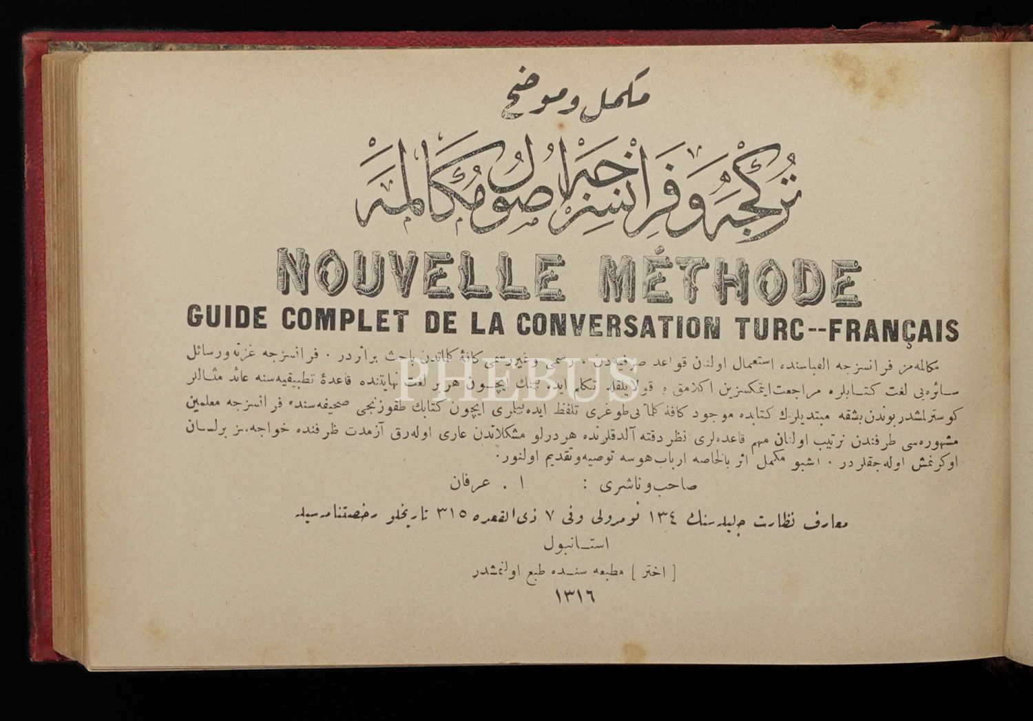 KÜLLİYYÂT-I MÜKÂLEME-İ ELSİNE, Mükemmel ve Muvazzah TÜRKÇE VE FRANSIZCA USUL-İ MÜKÂLEME (NOUVELLE METHODE GUIDE COMPLET DE LA CONVERSATION TURC-FRANÇAIS), Vizental Efendi başkanlığında muallimler heyeti, 1316, Ahter Matbaası, 512 sayfa, 20x14 cm…