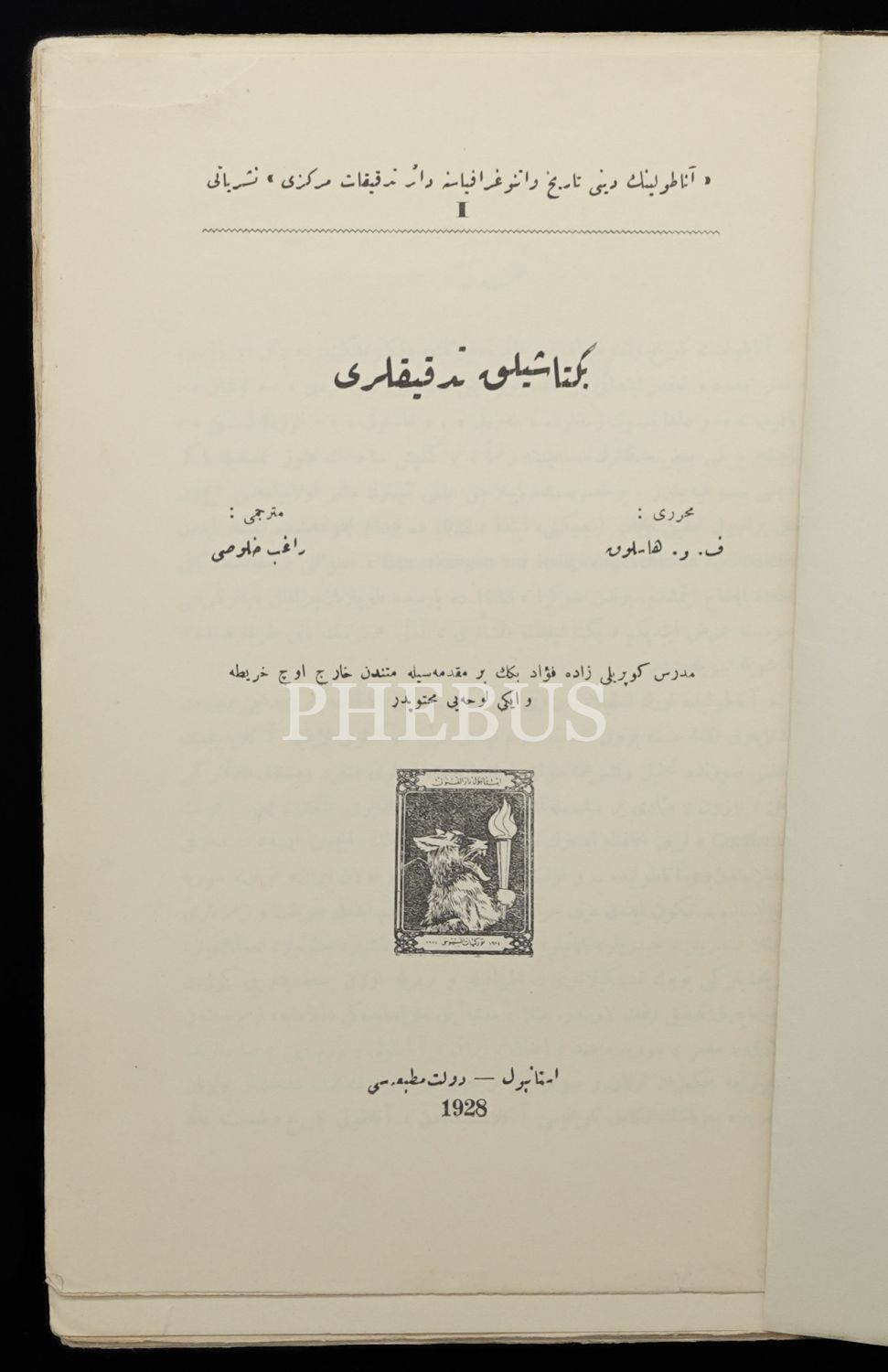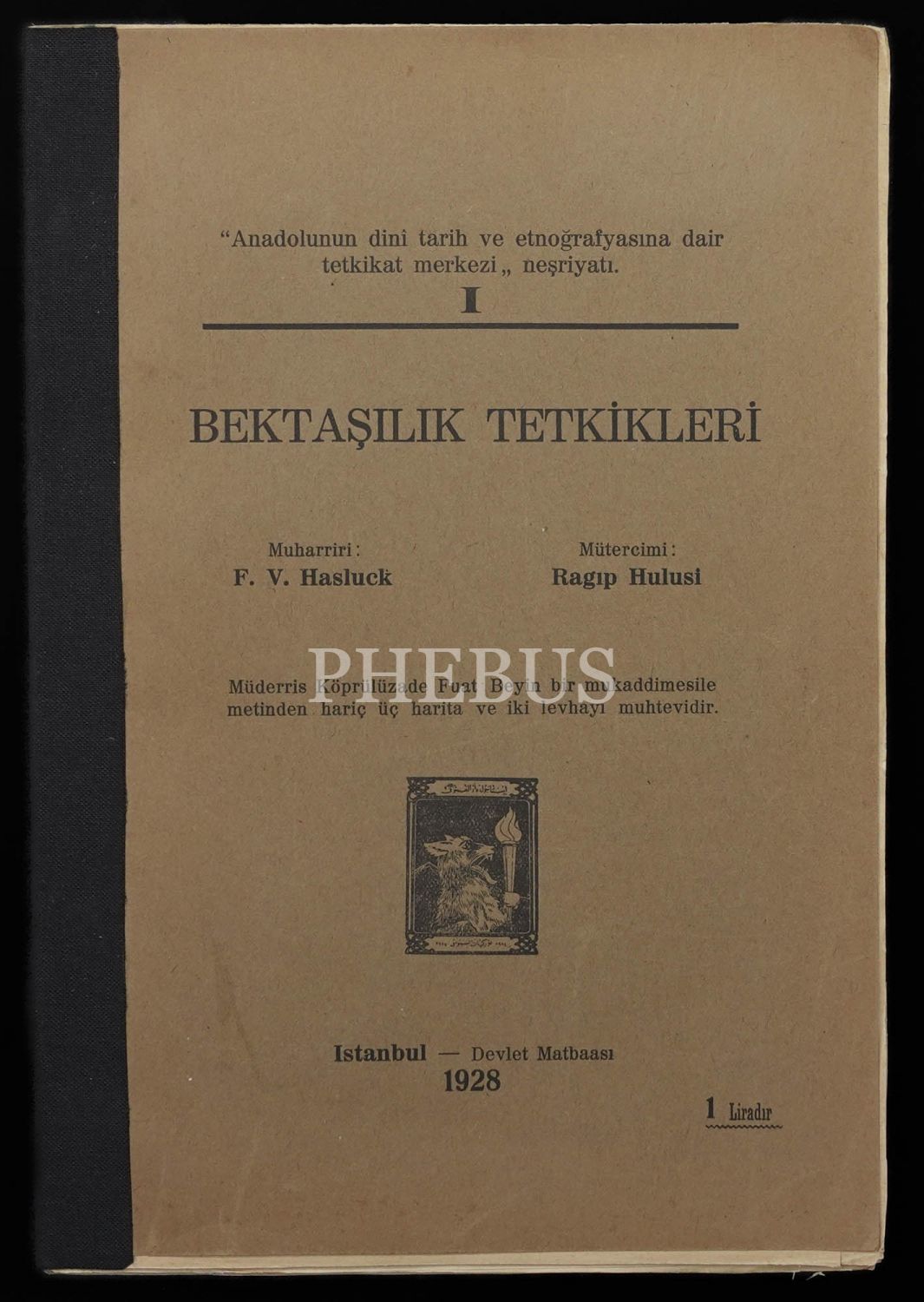 BEKTAŞİLİK TETKİKLERİ, F. V. Hasluck, çeviren: Ragıp Hulusi, 1928, Devlet Matbaası-Anadolunun Dini Tarih ve Etnografyasına Dair Tetkikat Merkezi neşriyatı, 141 sayfa, 18x26 cm...