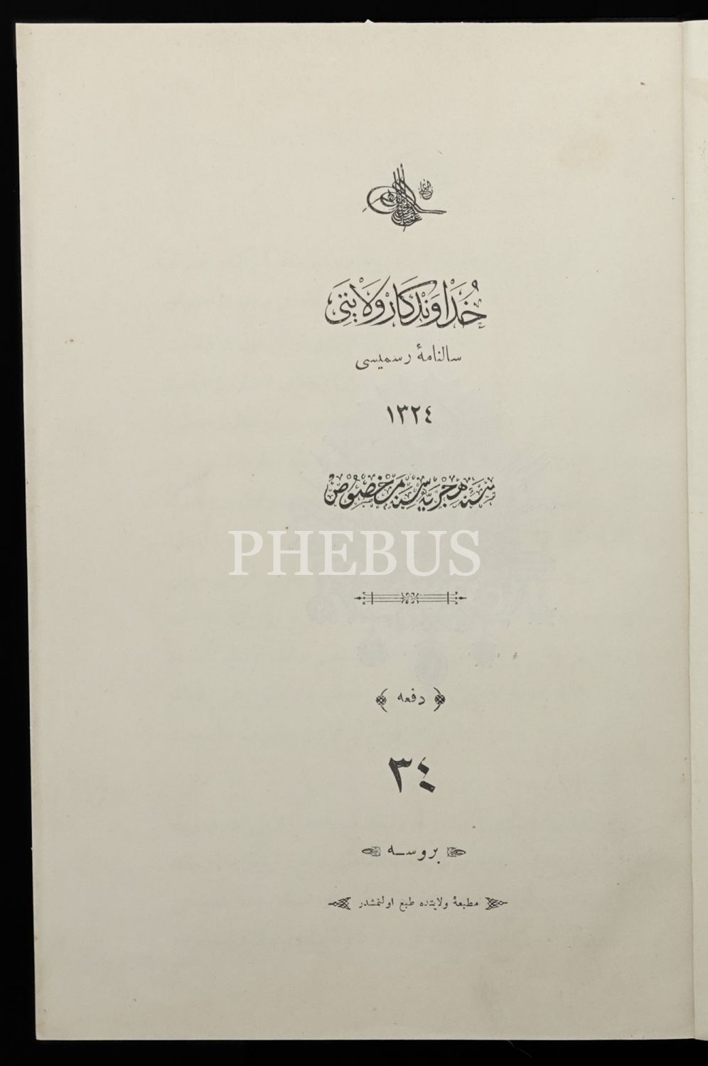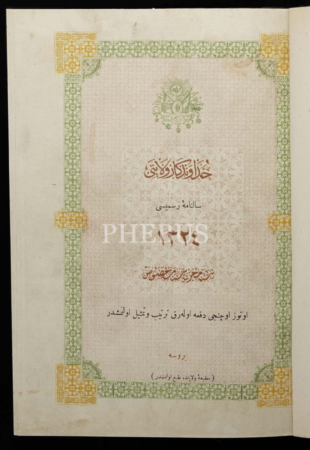 HÜDAVENDİGÂR VİLAYETİ SÂLNÂME-İ RESMİSİ, Hazırlayan: Süleyman Nazif, 1324, Vilâyet Matbaası, 616 sayfa, 18x25 cm...