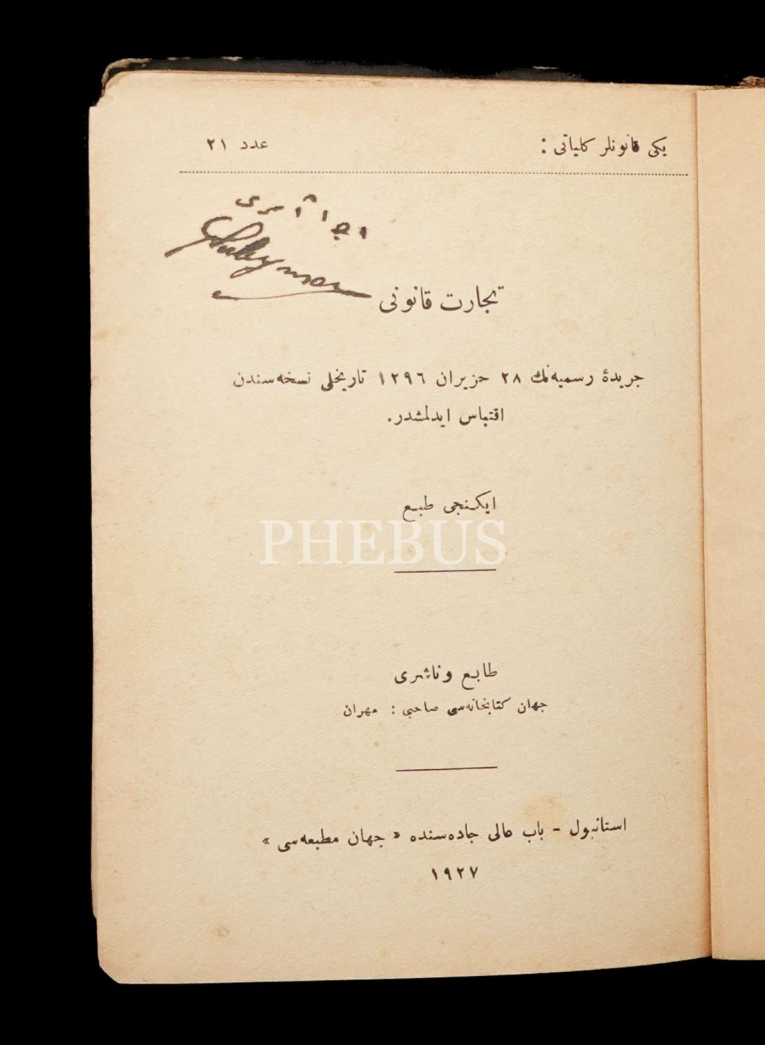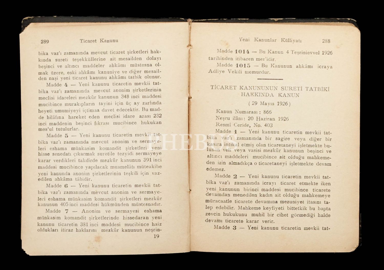 TİCARET KANUNU (Ticaret Kanununun Tatbikatı Kanunu), 1927, Cihan Matbaası, 296 sayfa, 13x16 cm...