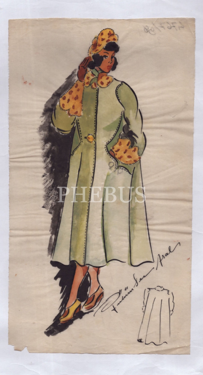 Gülümser Aral´ın ıslak imzalı kıyafet çizimi, 15x27 cm...