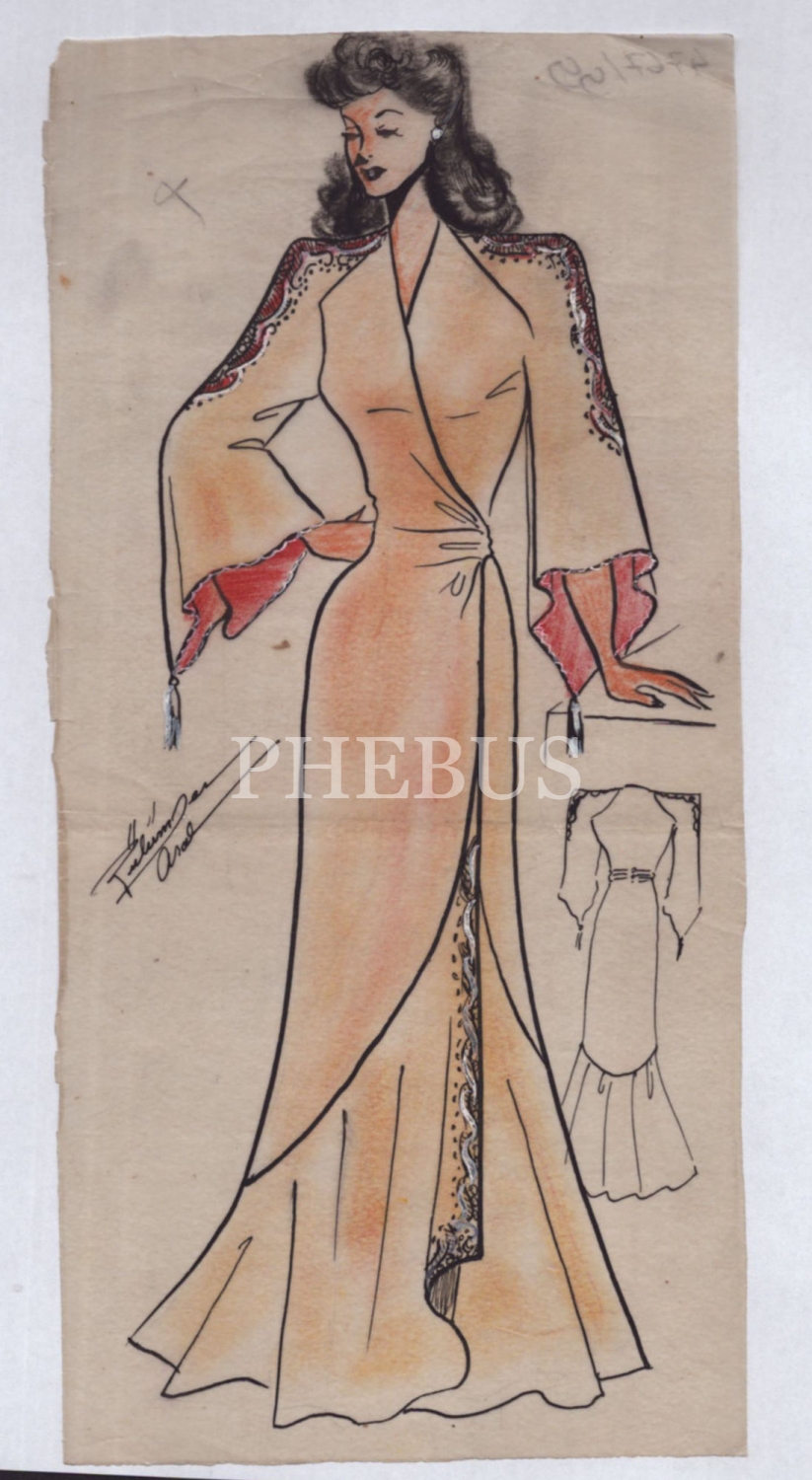 Gülümser Aral´ın ıslak imzalı kıyafet çizimi, 13x27 cm...