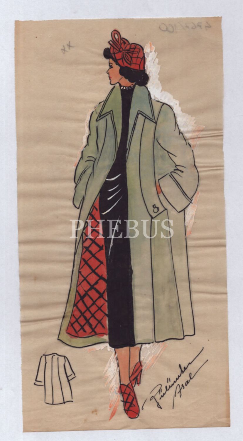 Gülümser Aral´ın ıslak imzalı kıyafet çizimi, 13x26 cm...