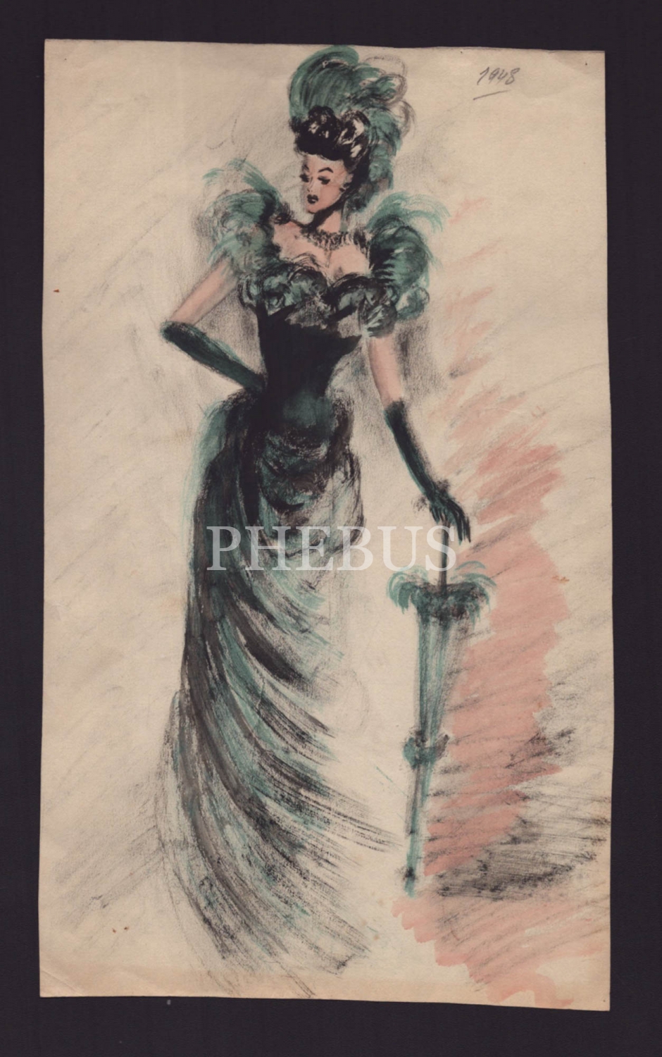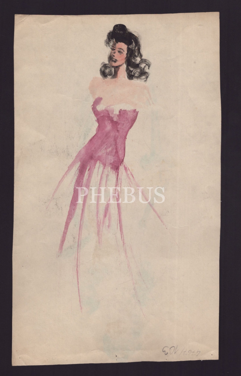 Gülümser Aral´ın ıslak imzalı, 1948 tarihli kıyafet çizimi, 18x30 cm...