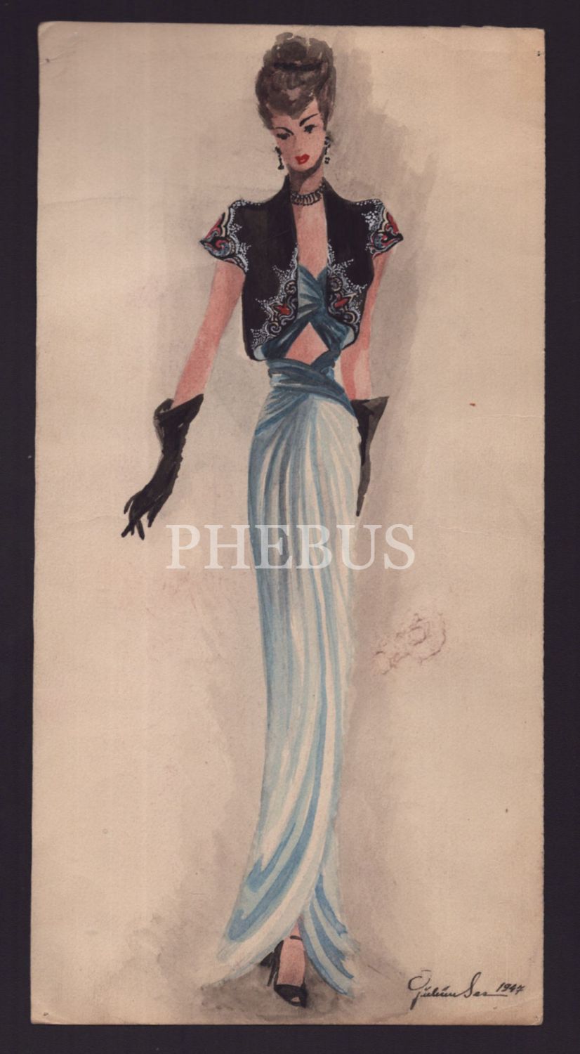 Gülümser Aral´ın ıslak imzalı, 1947 tarihli kıyafet çizimi, 17x33 cm...