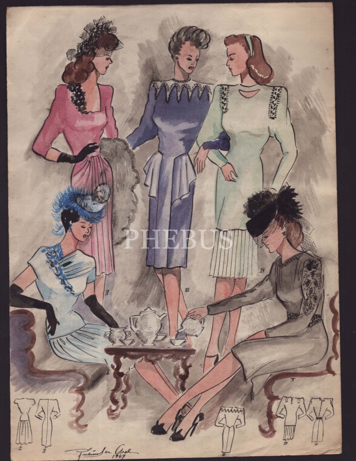 Gülümser Aral´ın ıslak imzalı, 1947 tarihli kıyafet çizimi, 25x34 cm...