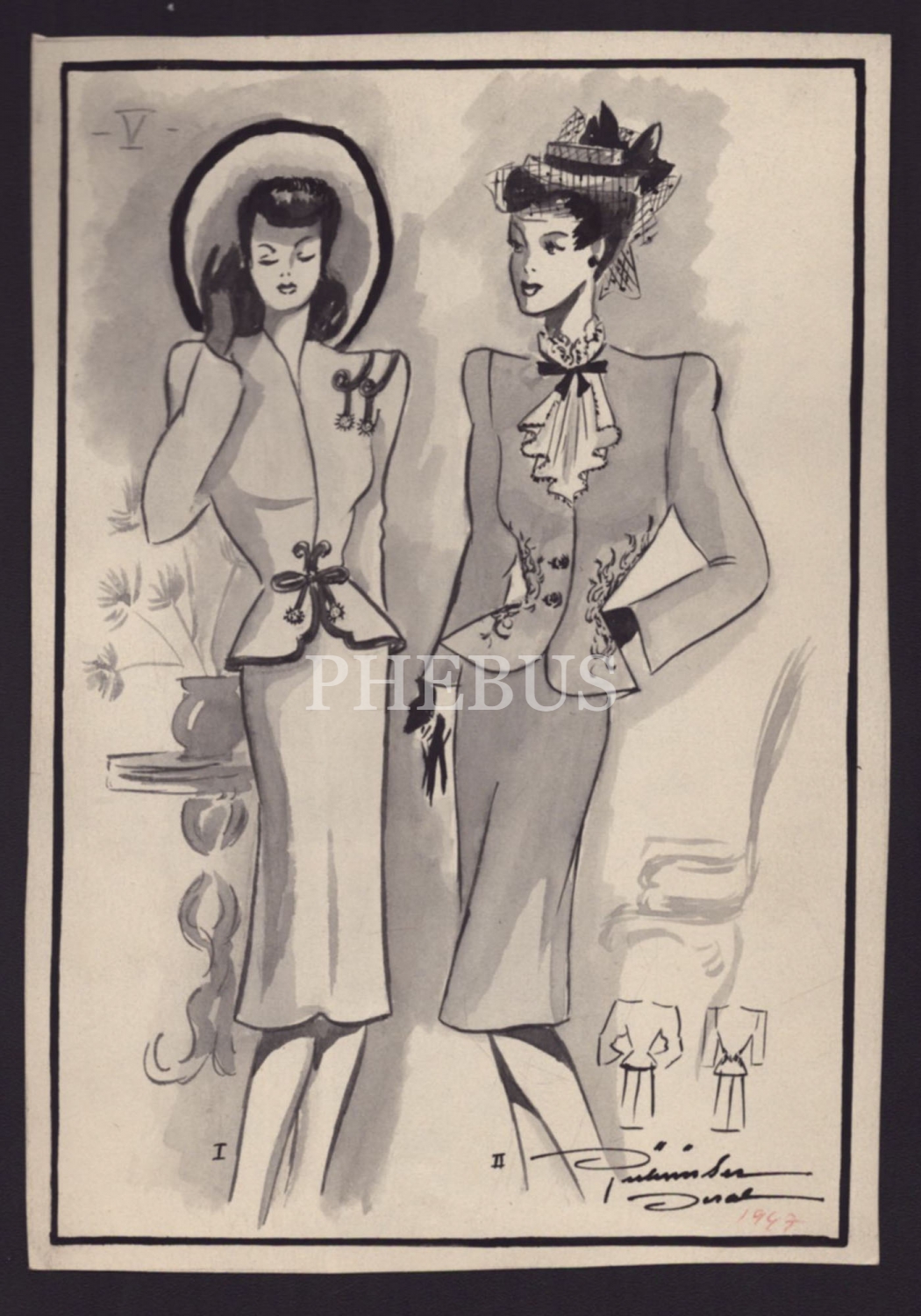 Gülümser Aral´ın ıslak imzalı, 1947 tarihli kıyafet çizimi, 15x22 cm...