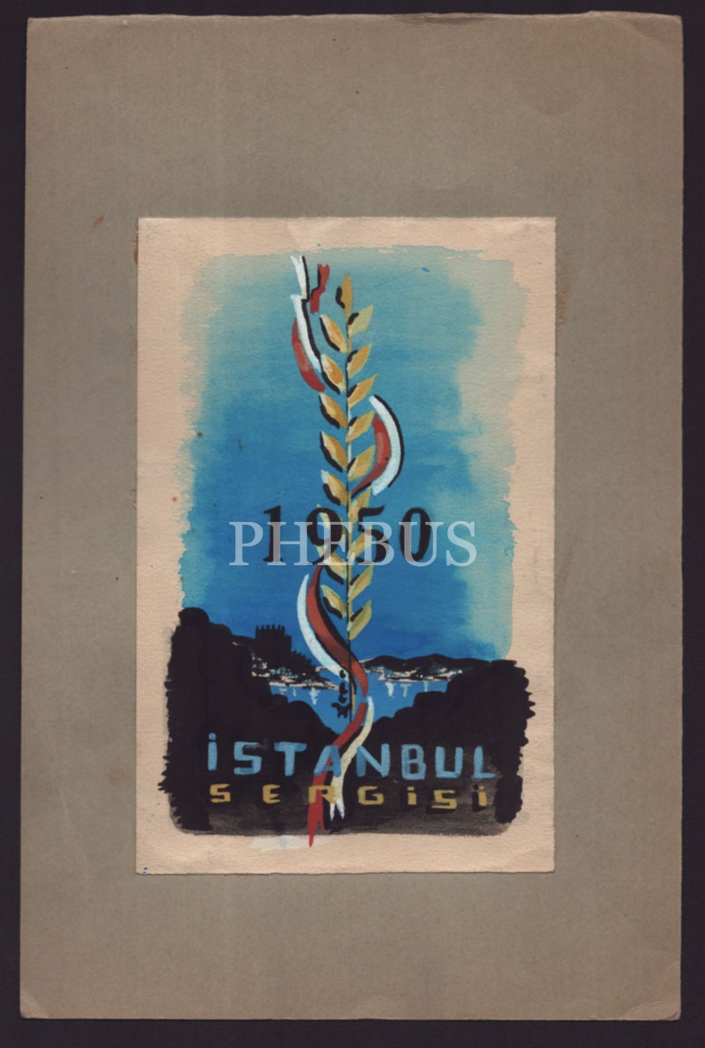 Gülümser Aral´ın "1950 İstanbul Sergisi" konulu çizimi, paspartusuyla birlikte 17x25 cm...