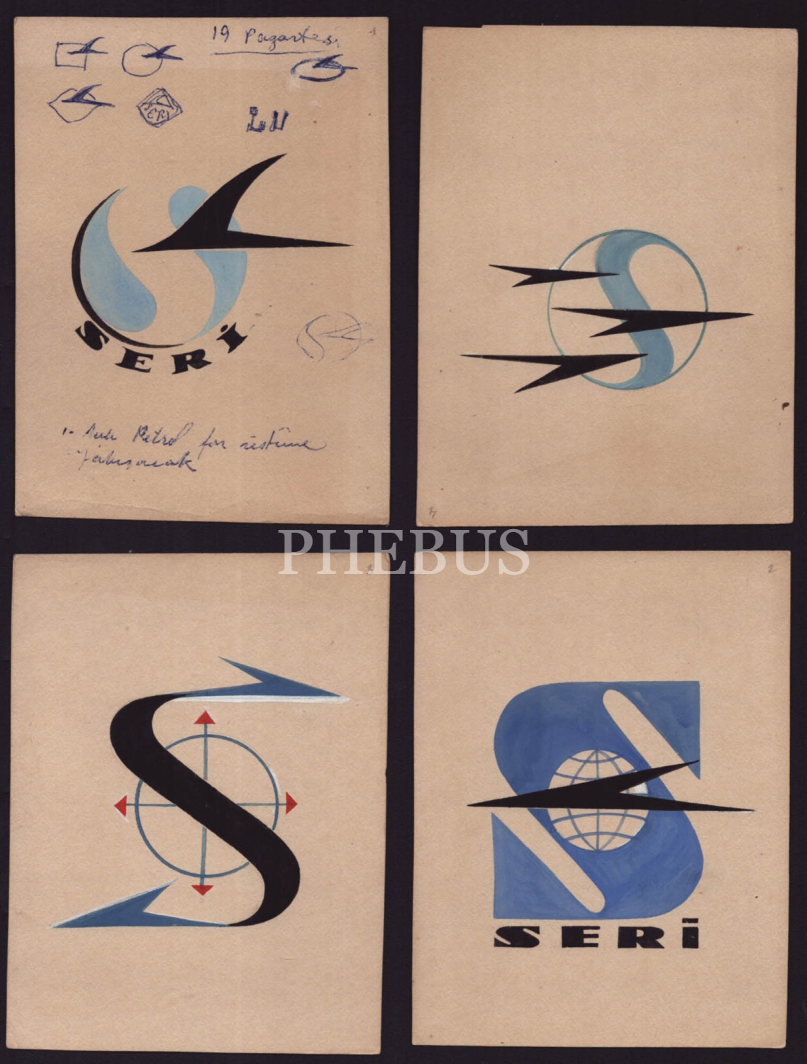 Gülümser Aral´ın bir havayolu şirketinin amblem yarışması için hazırladığı 4 adet tasarım, 13x18 cm...